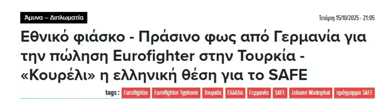 "Ulusal fiyasko – Almanya'dan Türkiye'ye Eurofighter satışı için yeşil ışık – Yunanistan'ın SAFE konusundaki tutumu paramparça oldu."