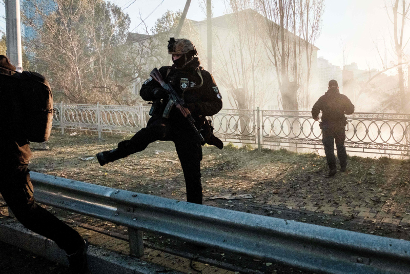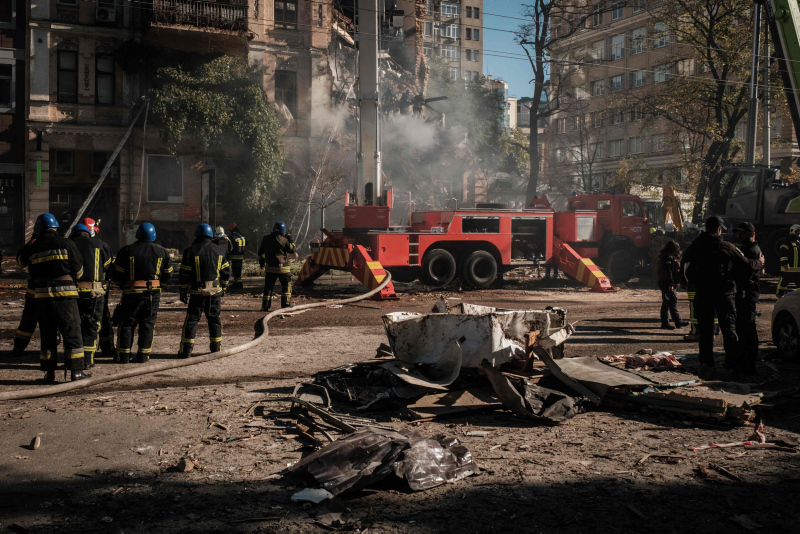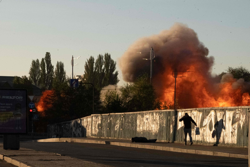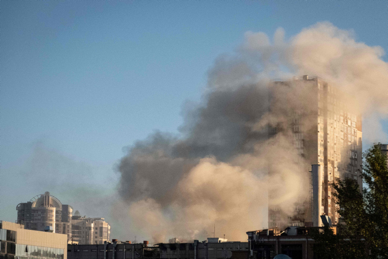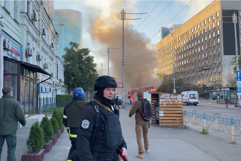 Kiev'deki saldırı anı kameralara da yansıdı. Vurulan bina çevresinde yeni kamikaze İHA'ların sesi duyuldu. Bunun üzerine bölgede bulunan güvenlik güçleri, kamikaze İHA'yı etkisiz hale getirmek için havaya ateş açtı.