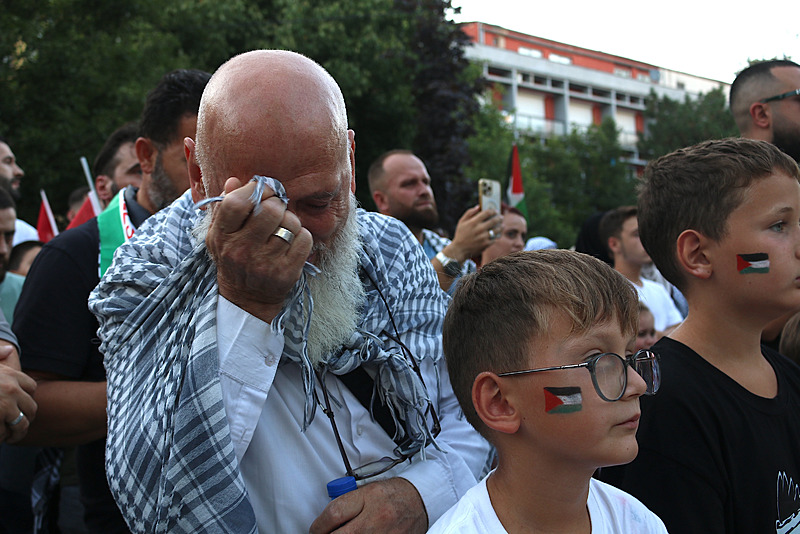 Filistin'e Destek Platformu Dönem Başkanı Mehmet Güney, Beyazıt Meydanı'ndan Ayasofya-i Kebir Cami-i Şerifi'ne ilerleyen vatandaşlara, yürüyüş sonunda hitap etti.