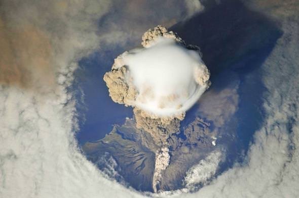 Sarychev Volkanı'nın 2009 yılında patladığı an (Rusya)