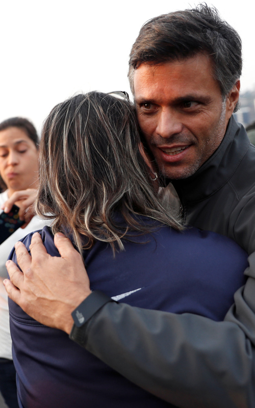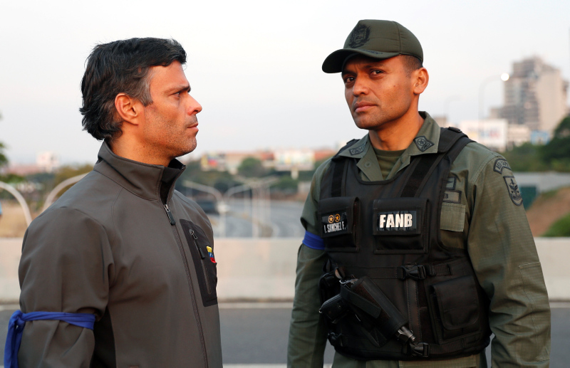 Üç dakikalık videoda, bir zırhlı aracın önünde, bir grup askeri ve ev hapsindeki muhalif aktivist Leopoldo Lopez'i yanına alan Guaido, askerleri anayasayı korumak üzere sokağa çıkmaya davet etti.