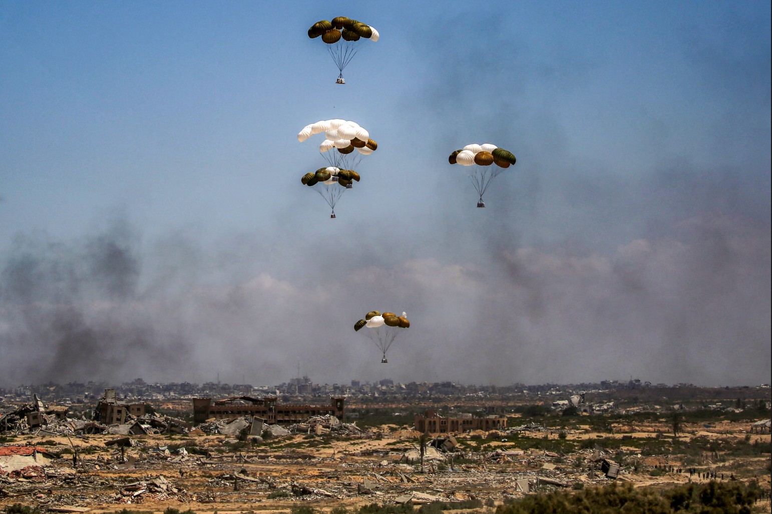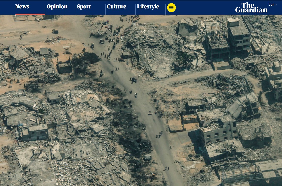 The Guardian muhabiri Lorenzo Tondo, Ürdün Silahlı Kuvvetleri'ne ait bir yardım uçağıyla Gazze üzerine yapılan uçuşa katıldı. Gazeteye göre, yukarıdan bakıldığında görülen manzara "bir uygarlığın küllerinde yaşam aramak gibi.