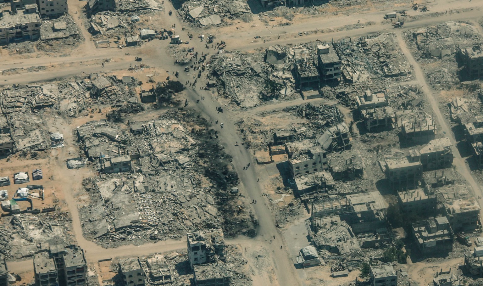 Gazze Şehri ve kuzey bölgeler üzerinden geçen uçak, tam anlamıyla bir toz ve çöküntü okyanusunun üzerinde ilerledi. Yerle bir olmuş mahalleler, yok olmuş yollar ve şehir diye bir şey kalmamıştı.