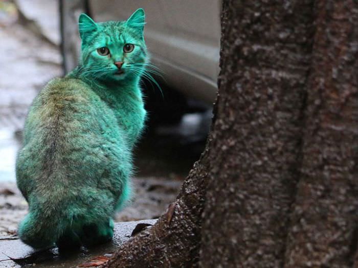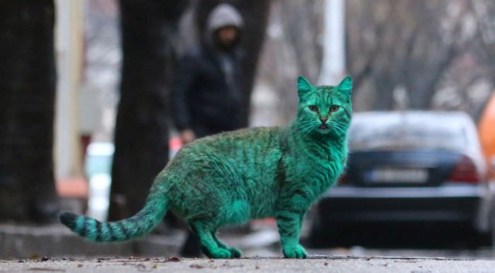Bulgaristan'ın Varna kentinde görülen yeşil kedinin sırrı çözüldü.