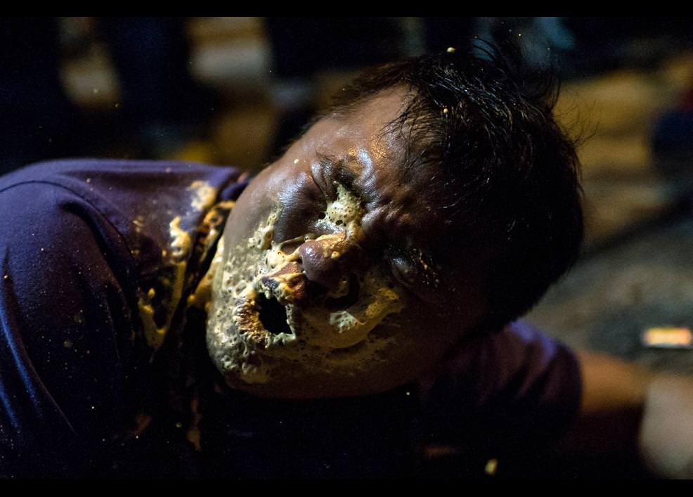 Hong Kong-Daha fazla demokrasi talebiyle gösterilere sahne olan kentte bir yerel gazeteci biber gazının yakıcı etkisi altında.