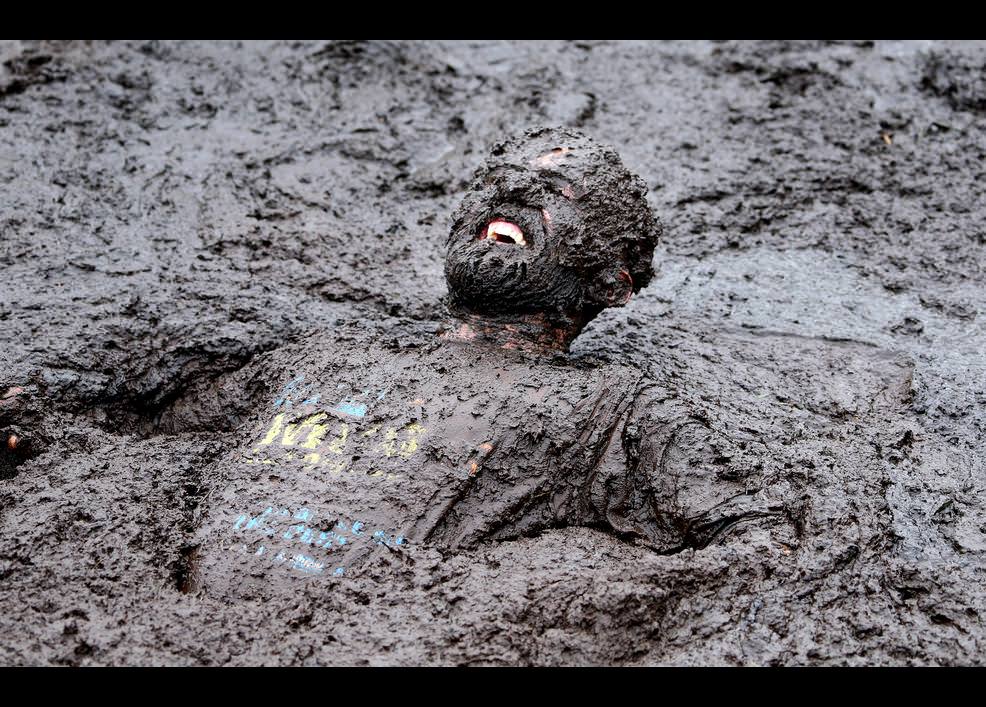 Kuzey İrlanda-'Çamur Çılgınlığı' yarışmasına katılan 800 kişi, yedi kilometrelik parkurda koşup sürünerek engelleri aşmaya çalışıyor.