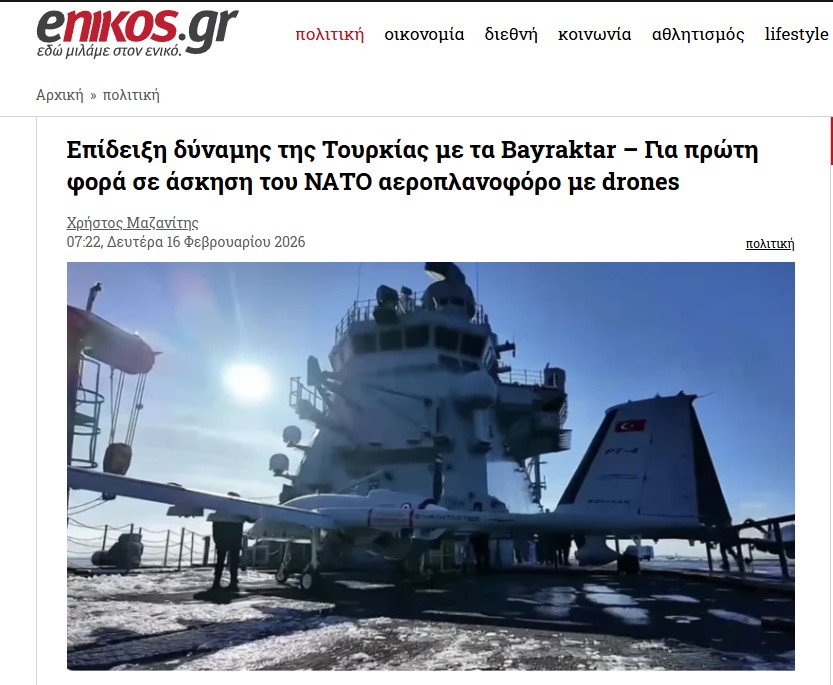 Yunanistan merkezli Ekinos.gr, Türk savunma sanayisinin dikkat çeken hamlesini manşetine taşıdı. Haberde, Bayraktar TB3'ün NATO'nun Steadfast Dart 2026 tatbikatı kapsamında TCG Anadolu'dan havalanarak yurt dışında ilk kez operasyonel bir gösterim gerçekleştirdiği vurgulandı.