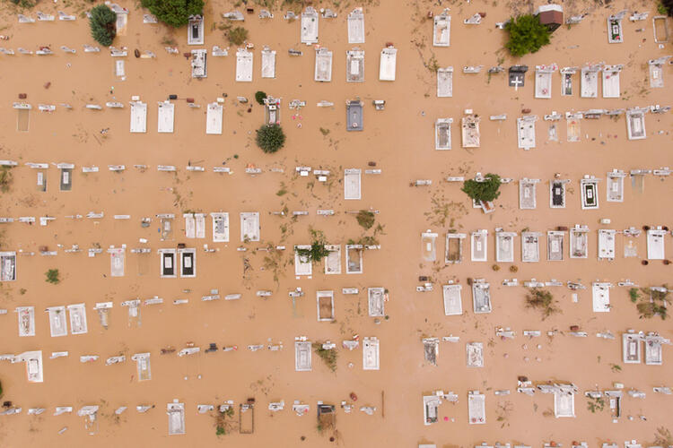 Batıdaki Kefolanya ve Ithaca adalarından ana karaya ulaşan tufan yolları ve mezarlıkları yuttu, sokaklar ve evler sel altında kaldı.