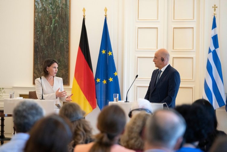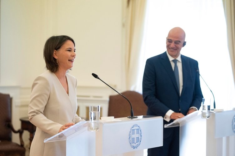 Türkiye ziyareti öncesi Yunanistan'a giden Almanya Dışişleri Bakanı Annalena Baerbock, Yunanistan Başbakanı Miçotakis ve Dışişleri Bakanı Nikos Dendias ile görüştü. Dendias görüşme sırasında skandal bir çağrıda bulundu.