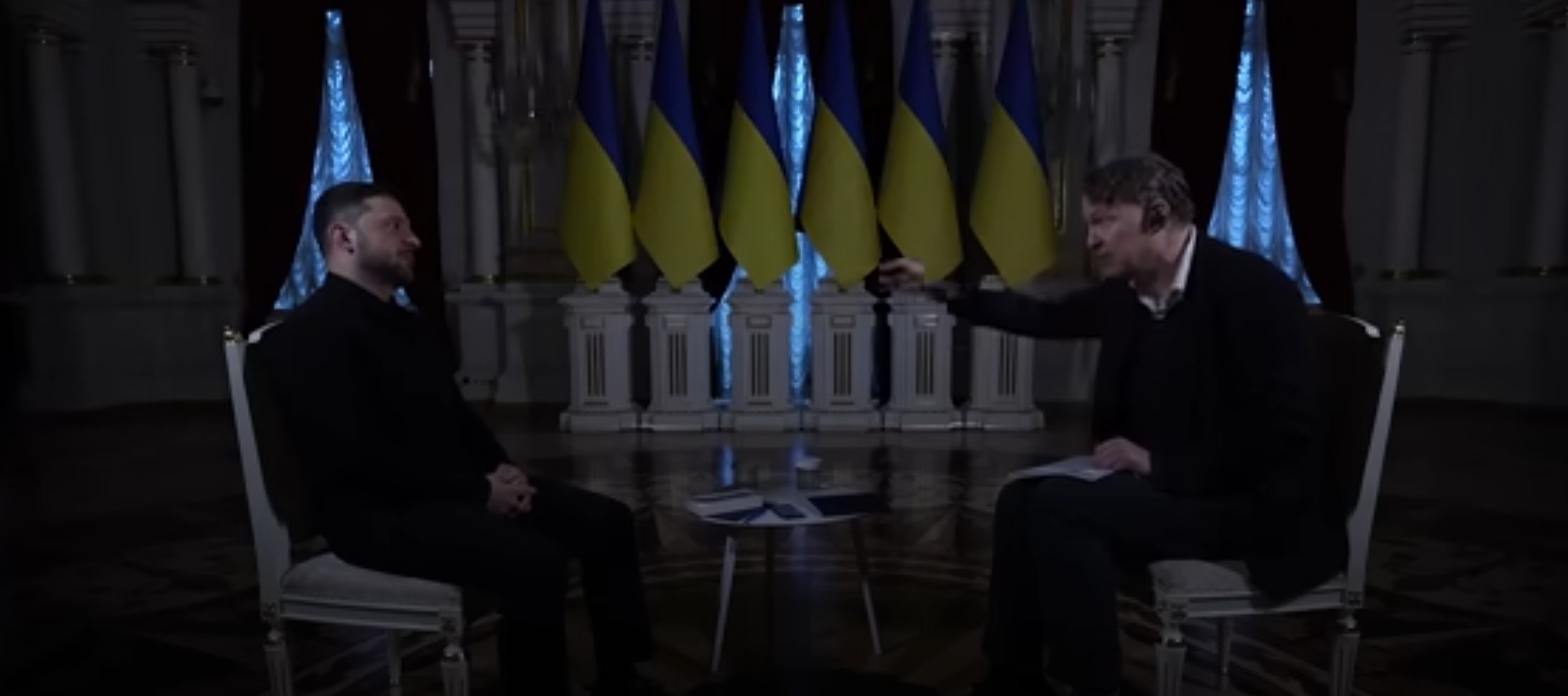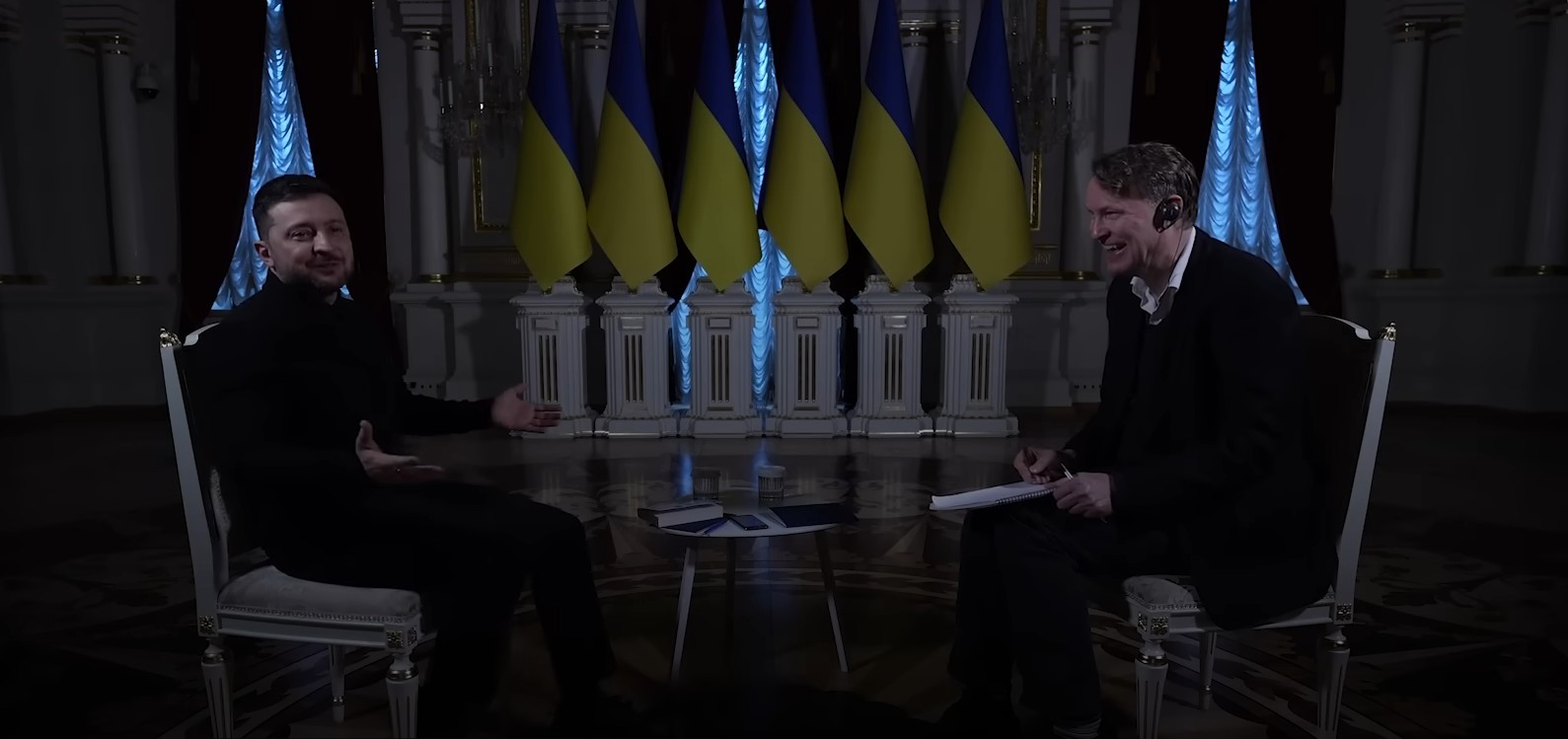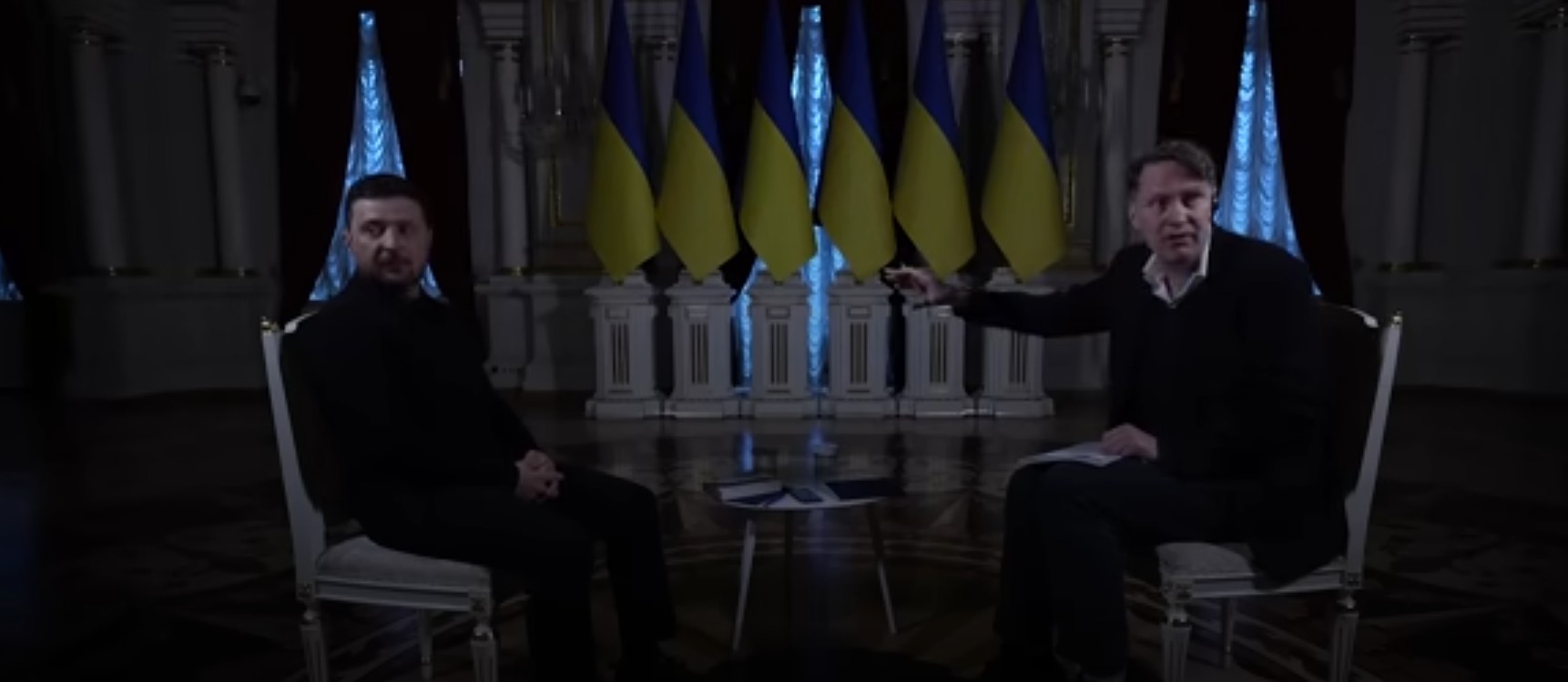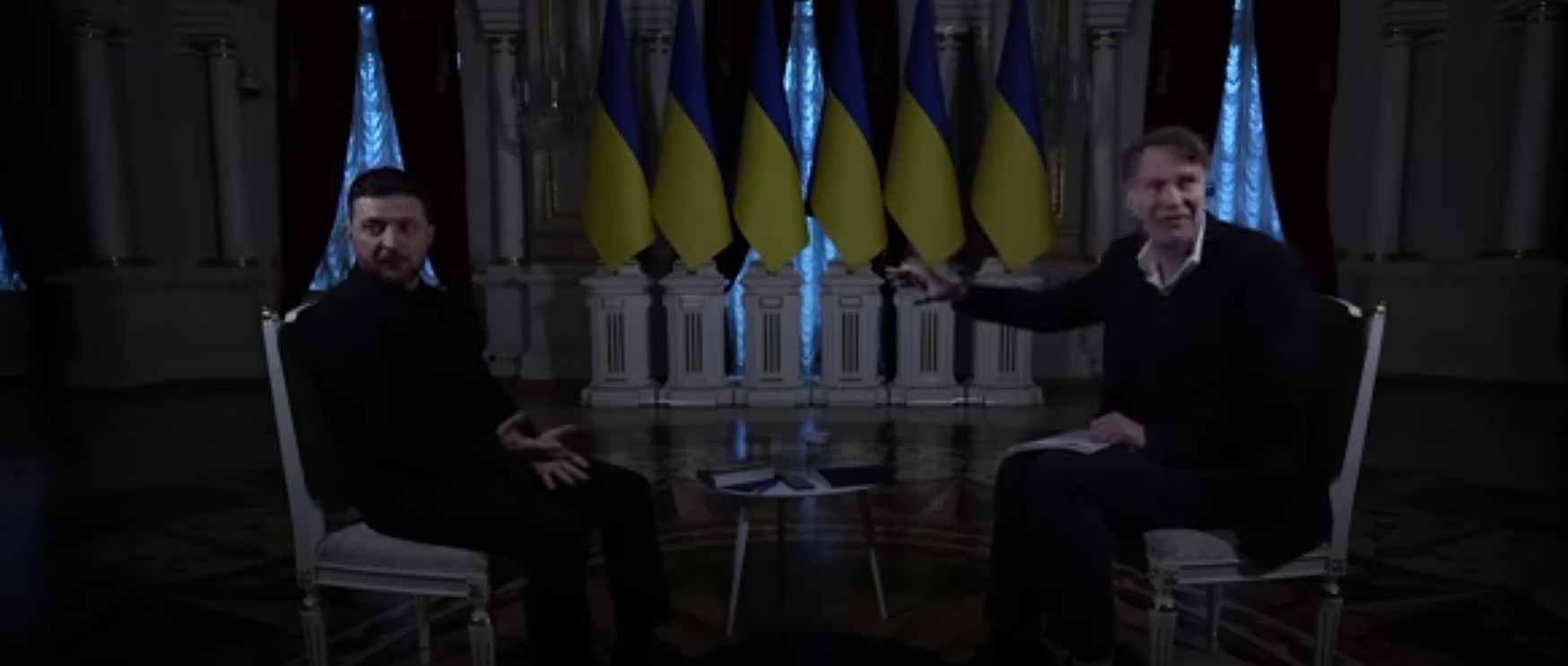 Zelenskiy'nin Başkanlık Sarayı'nda röportaj sorularını cevapladığı esnada ise elektrikler kesildi.