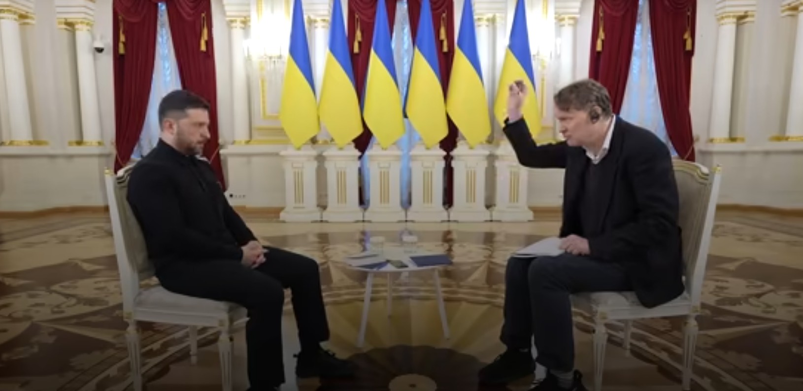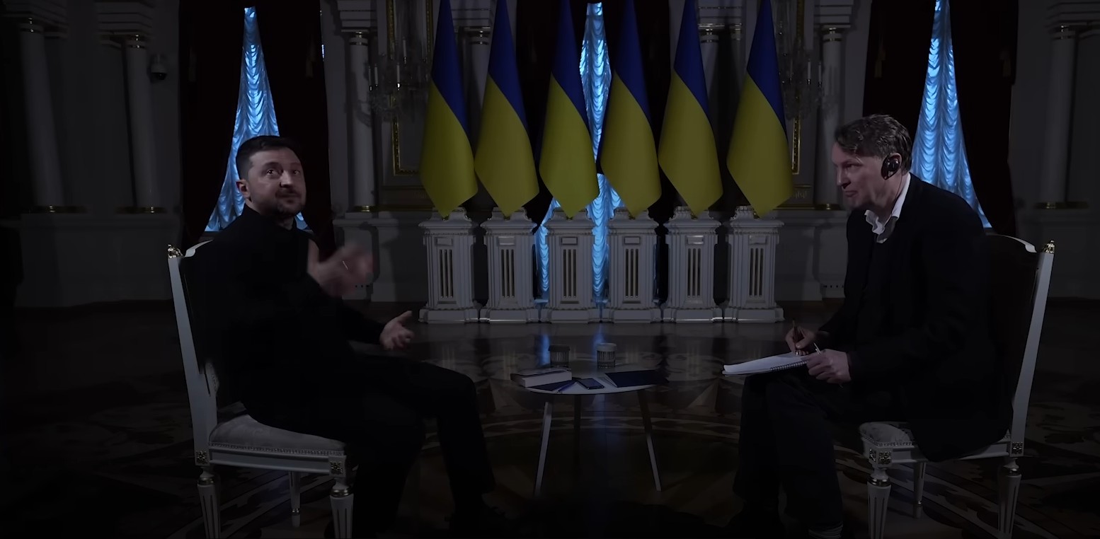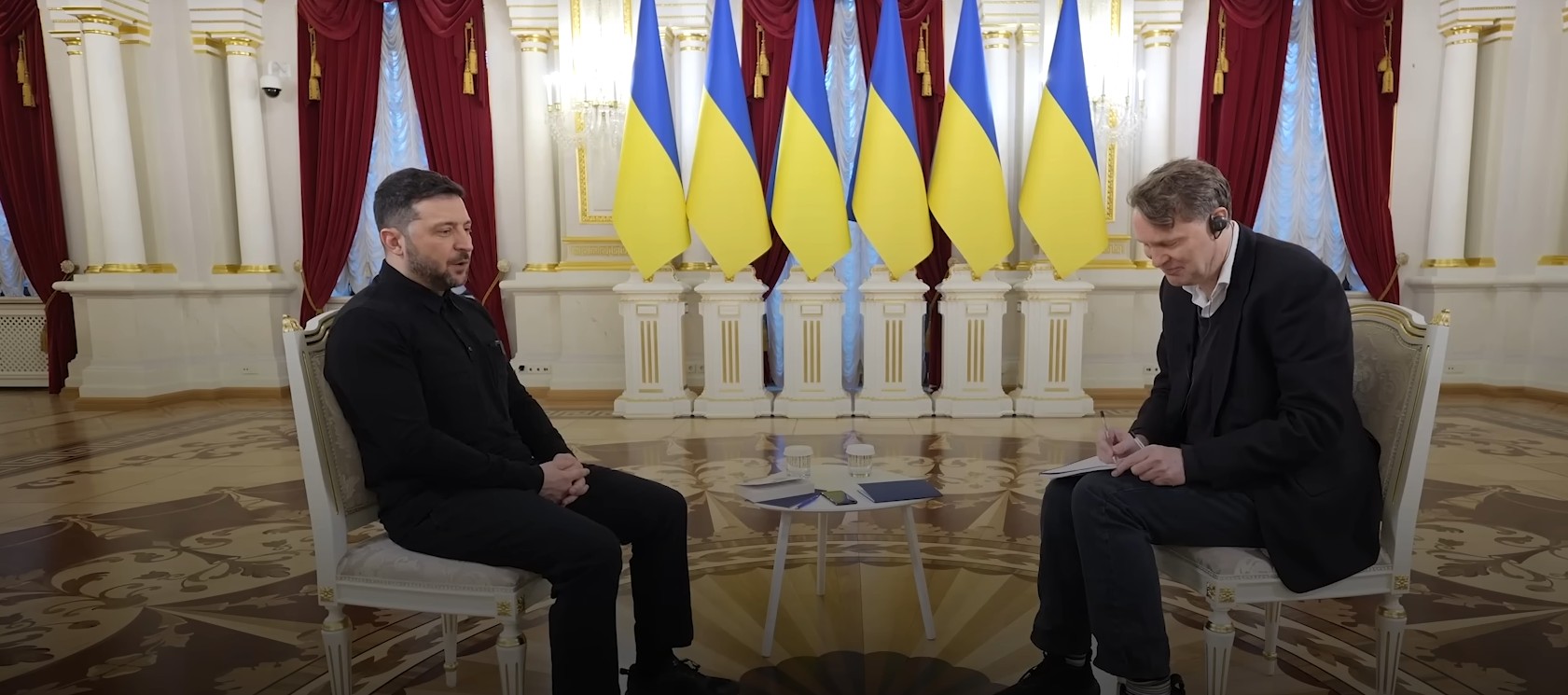 Zelenskiy'nin Başkanlık Sarayı'nda röportaj sorularını cevapladığı esnada ise elektrikler kesildi.