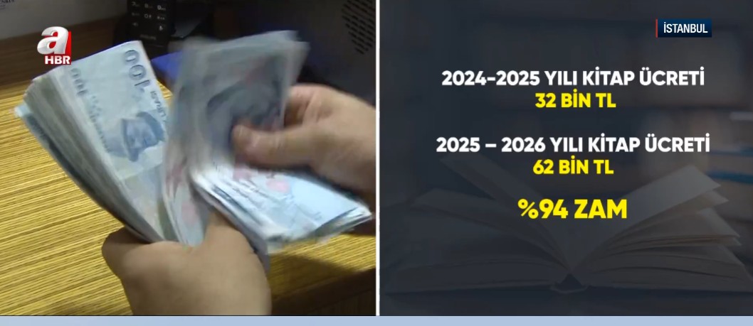 ATV'nin haberine göre bazı özel okullar velilerden kitap ücreti adı altında fahiş fiyatlar isteniyor. ATV muhabiri Şükran Uslu, mağdur ailelerden biri ile yaptığı görüşmede okulun bir matematik seti için 43 bin TL ücret istendiğini belirtti.