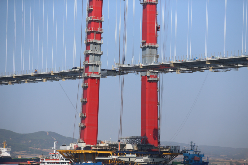Asya ve Avrupa yakalarındaki kule ayaklarına getirilen ve birbirine kaynatılan 3'er tabliye bloğunun vinç ile yukarıya kaldırılması sonrasında köprünün araç geçiş yolu Avrupa ve Asya kıtalarını birbirine bağlamış olacak.
