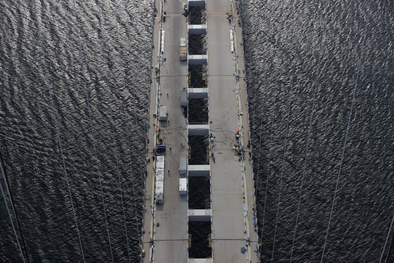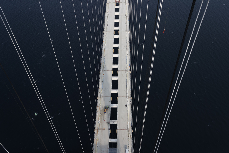 Köprünün araç geçiş yolunu oluşturacak toplam 87 tabliye blokundan 81'inin montajı tamamlandı. Artık geriye sadece 6 tabliye montajı kaldı.