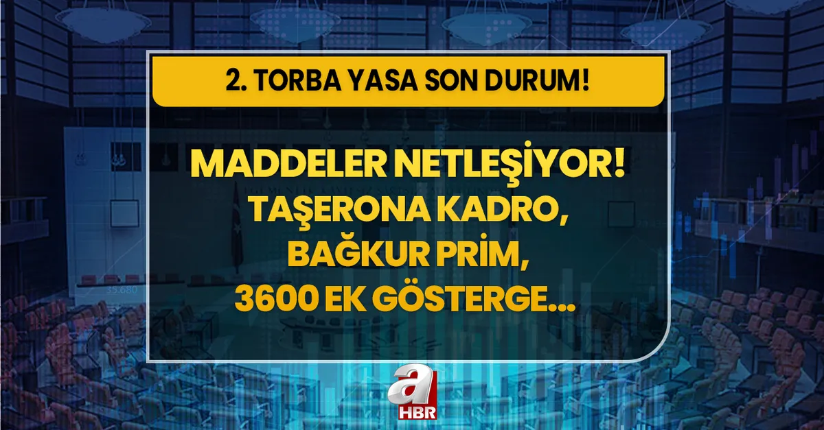 'Torba Yasa çıktı mı son dakika 2023?' sorusu arama motorlarında hız kazandı. 2. Torba Yasada çalışmalar sürüyor. Yasa tasarısının ilk iki bölümünde yer alan 80 madeden 42'si, yapılan görüşmeler sonucunda kabul edildi. Şimdi ise gözler, taşerona kadro, Bağkur 7200 prim eşitlemesi, ev hanımlarına emeklilik ve 3500 ek gösterge gibi maddelerde! İşte 2. Torba Yasa son dakika açıklamaları...