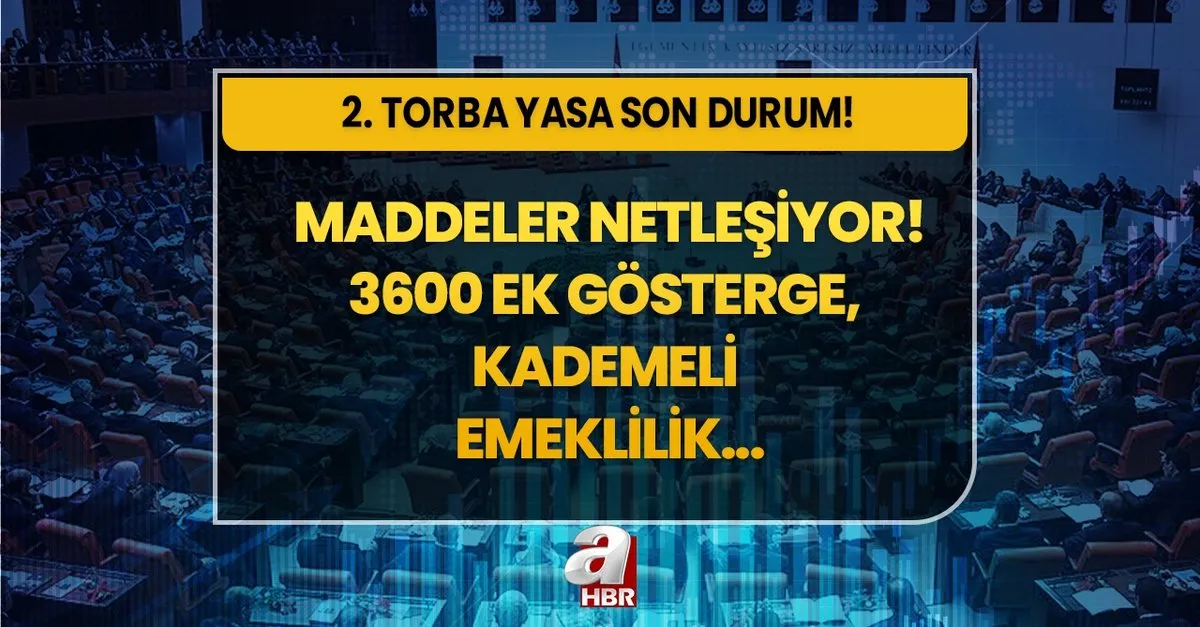 2.Torba Yasada maddeler netleşiyor! Meclis, 16 Ocak itibarıyla yeni yıl mesaisine başlıyor. Torba Yasa, ilk aşamasını tamamladı. İlk 46 madde, TBMM tarafından onaylandıktan sonra, geriye kalan maddelerin görüşmeleri hala devam ediyor. 2024 ayına girilmesiyle birlikte Meclis gündeminin en önemli konularından biri olarak öne çıkan 3600 ek gösterge, milyonlarca kamu çalışanının maaşları, emekli aylıkları ve emekli ikramiyelerinin belirlenmesinde kritik bir rol oynuyor. İşte Torba Yasa maddeleri ve içeri hakkında son gelişmeler...