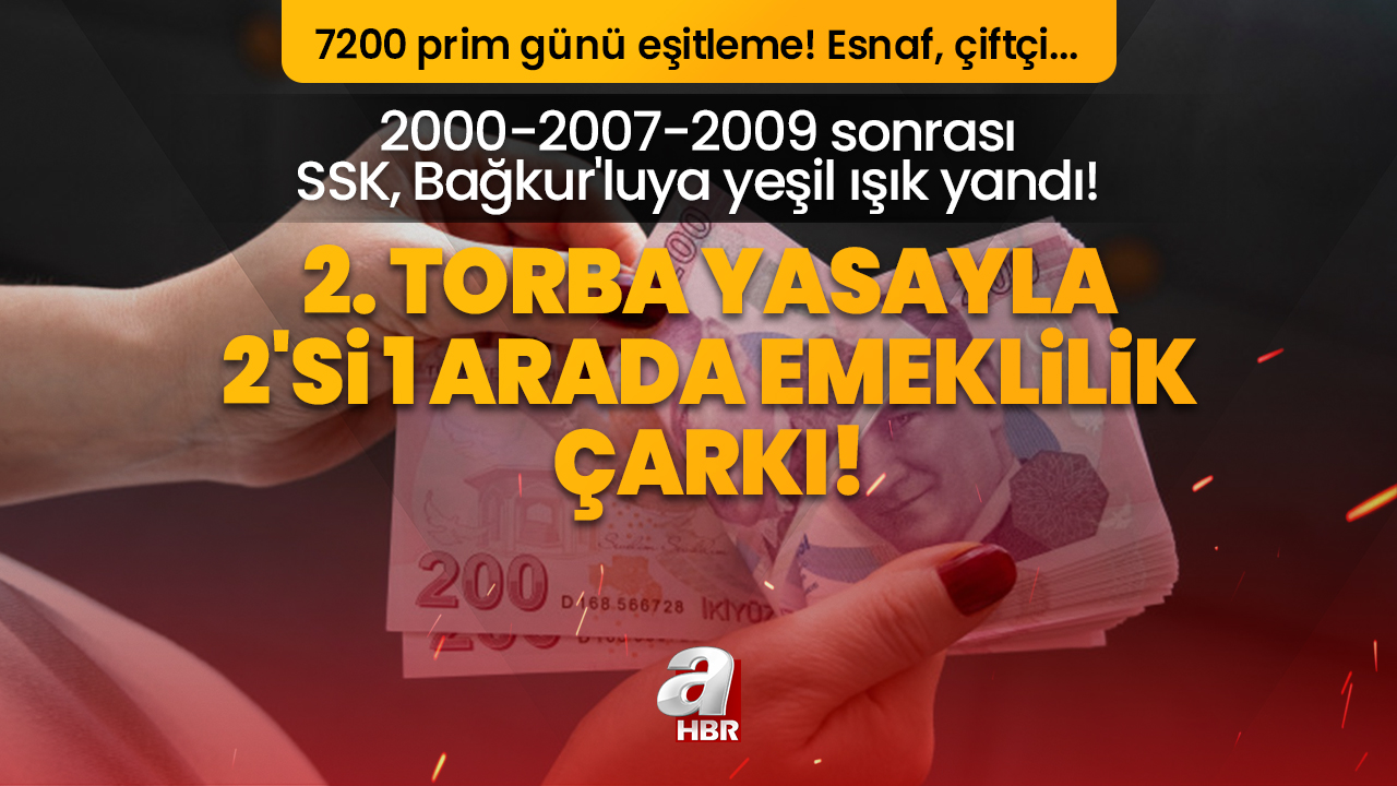 2. torba yasayla 2'si 1 arada emeklilik çarkı! 2000-2007-2009 sonrası SSK, Bağkur'luya yeşil ışık yandı! 7200 prim günü eşitleme! Esnaf, çiftçi...