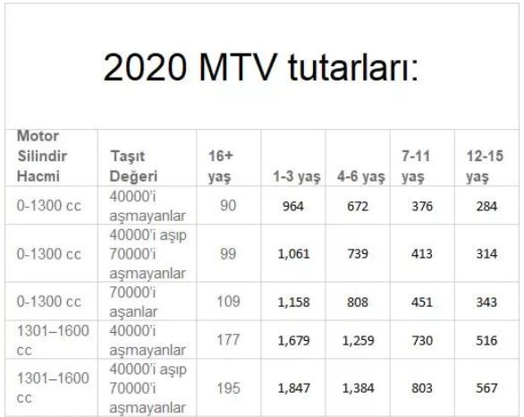 2020 MTV ücretleri belli oldu! Yüzde 22.58 oranında belirlenen 2020 yeni değerleme oranında son dakika değişikliği gerçekleşti. Başkan Recep Tayyip Erdoğan, yüzde 22,58 olan değerleme rakamını yüzde 12'ye indirdi. 1-3 yaş, 4-6 yaş, 7-11 yaş, 12-15 yaş ve 16 yaş üstü motor hacmi 1.3 altı, 1.6, 2000 motor gibi tüm araçlar için ödenecek MTV yüzde 12 olacak. Peki, 2020 MTV ücreti ne kadar? Hangi araba ne kadar ödeyecek? Sizler için ahaber.com.tr ekibi olarak ödenecek MTV tutarlarını derledik. İşte 2020 MTV ücretleri...