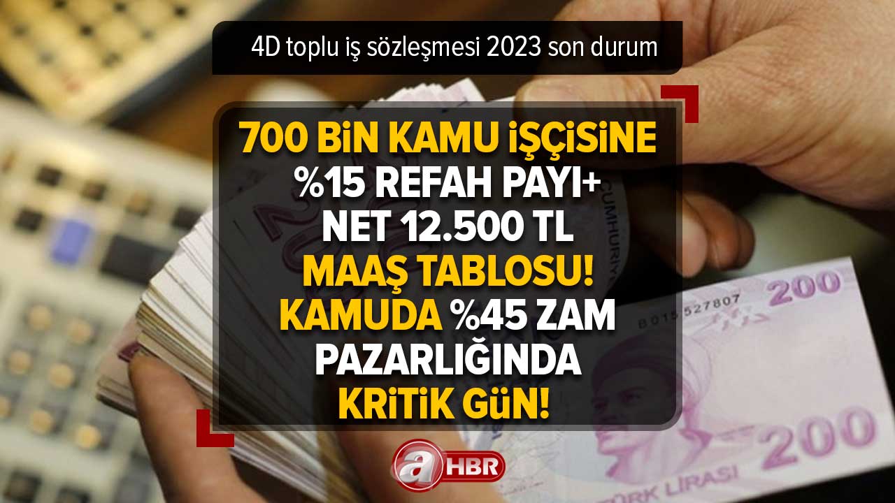 700 bin kamu işçisine %15 Refah payı+Net 12.500 TL maaş tablosu! Kamuda %45 zam pazarlığında kritik gün! 4D toplu iş sözleşmesi 2023 son durum