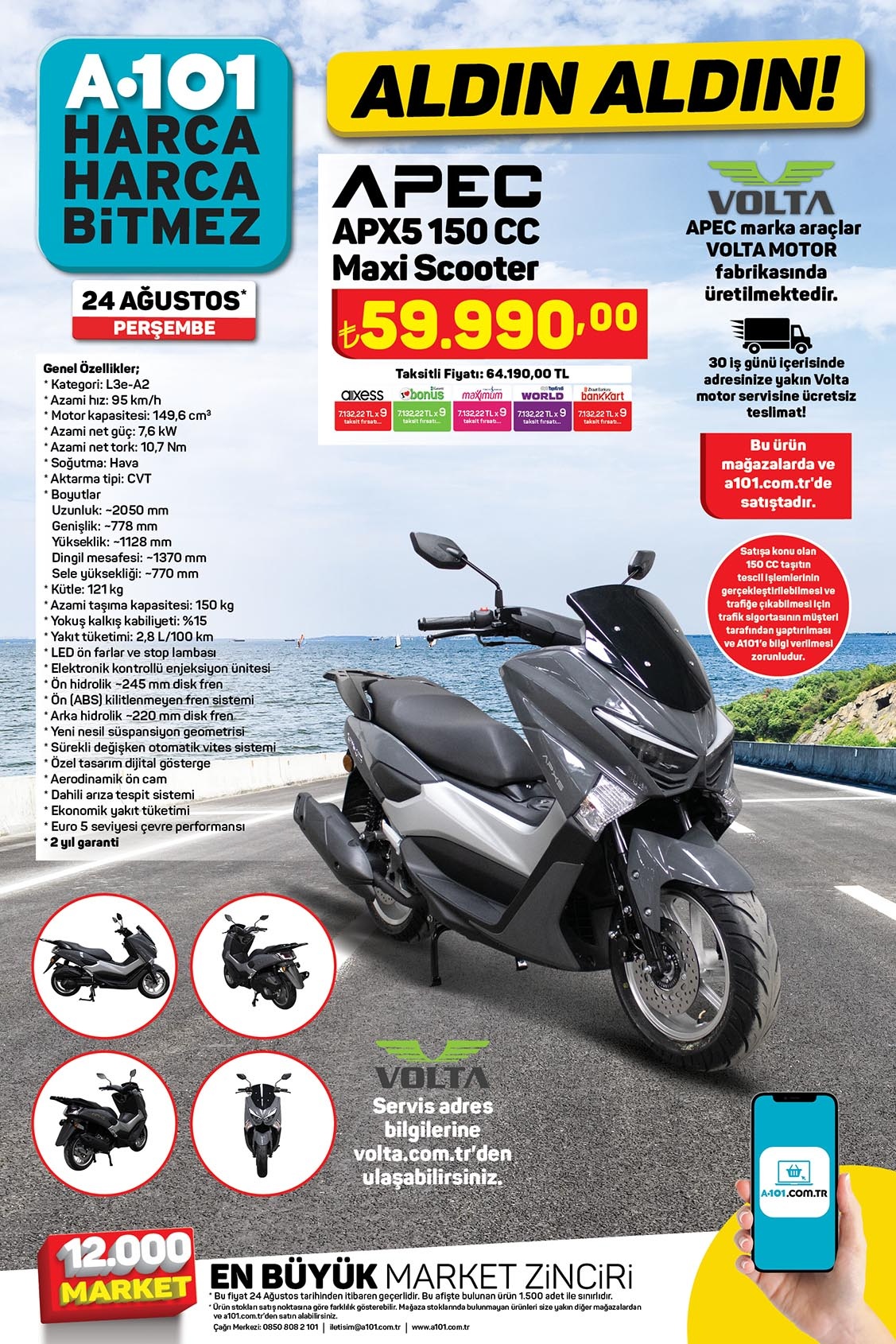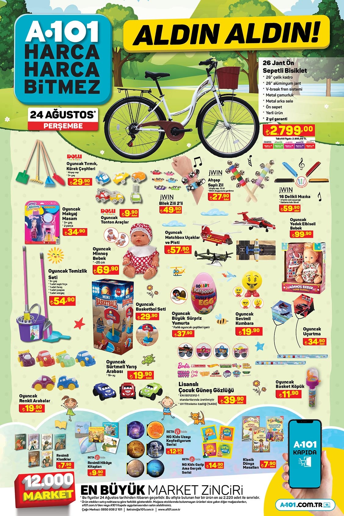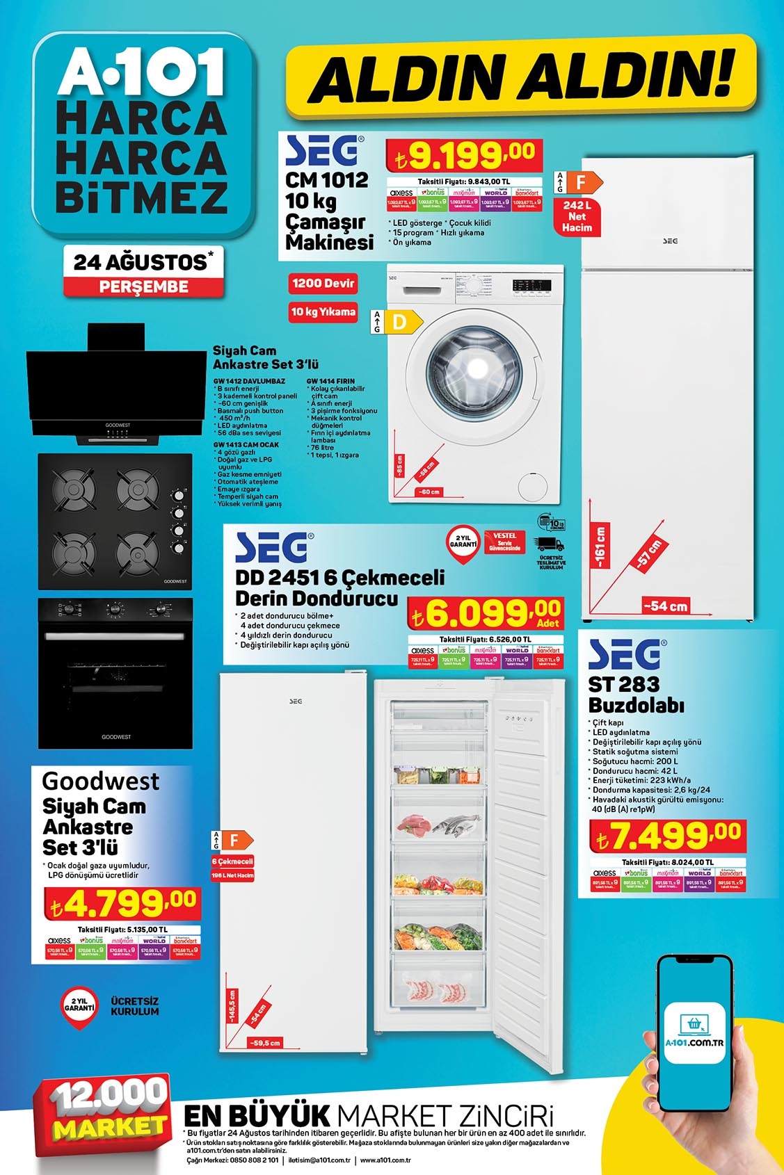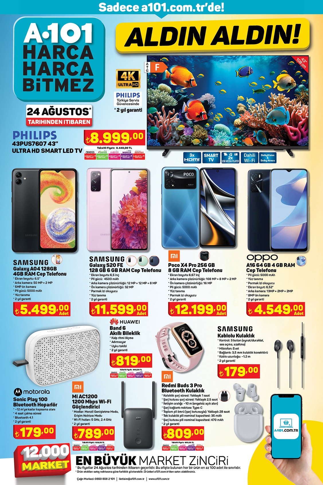 A101 24 Ağustos 2023 aktüel ürünler kataloğu yayınlandı. Bu haftanın yıldızlarında dolu dolu bir liste hazırlayan marketler zinciri, başta elektronik olmak üzere, beyaz eşya, bilgisayar, halı çeşitleri, mobilya, bilgisayar, elektrikli motosiklet, mutfak gereçleri, küçük ev aletleri, kamp malzemeleri gibi binlerce ürünü indirimli fiyat etiketi ile satışa sunmaya başladı.
