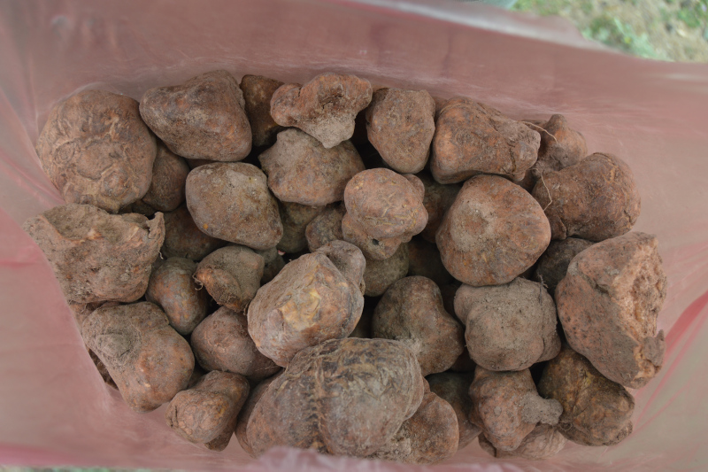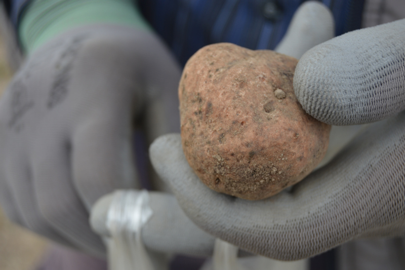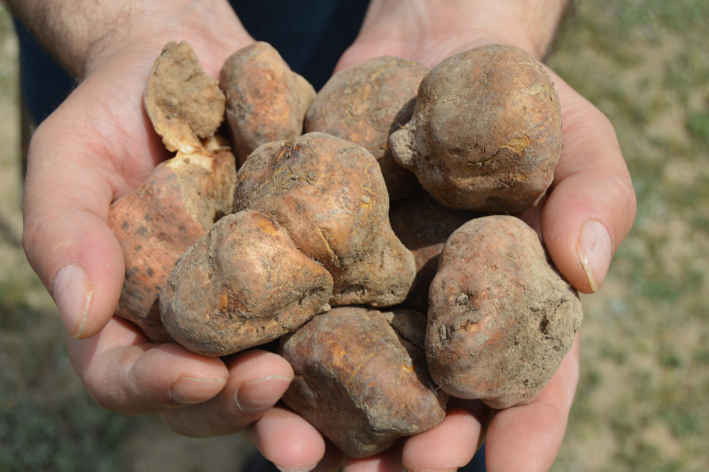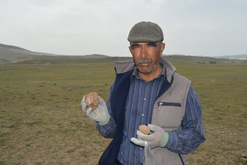 "Görüntüsü aynı patatese benziyor. İnsan sağlığına da çok faydalı ve protein oranı yüksek bir besin. Hatta kolesterole de iyi geldiği söyleniyor. Bunu arazide her insan bulamaz. Domalan, toprakta hafif kabarır ve görünen bir otu vardır. Bunları bilen, arazide mantarı bulabilir."
