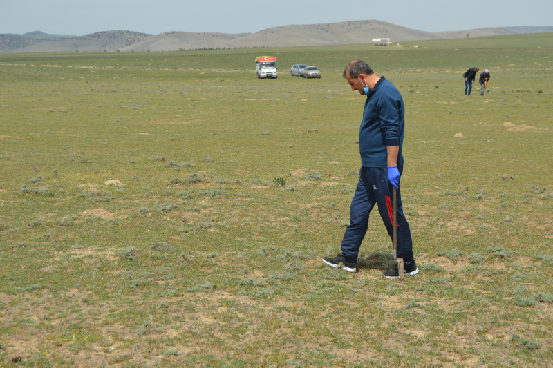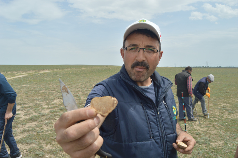 İlçede farklı mevkilerdeki arazilere çıkan domalan mantarları, yöre halkı tarafından demir çubuklar ve sopalarla, toprak altında define arar gibi aranıyor.