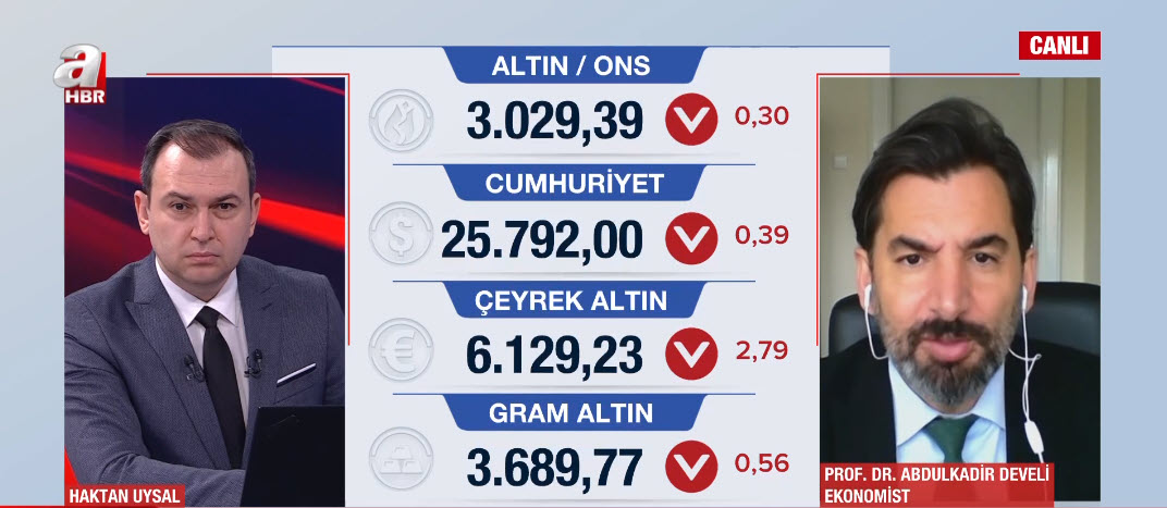 Ekonomist Prof. Dr. Abdulkadir Develi ve Finans Analisti İslam Memiş, A Haber canlı yayınında konu ile ilgili değerlendirmelerde bulundu.