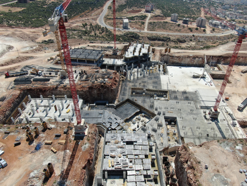 Son teknoloji ürünü cihazlar ile donatılacak olan, yeterli altyapı donanımına sahip, konforlu ve modern mimarisi ile akıllı bina özelliklerine sahip olacak yapıda binalar hızla yükselmeye devam ediyor. Hastanenin yapım çalışmaları drone ile de havadan görüntülendi.