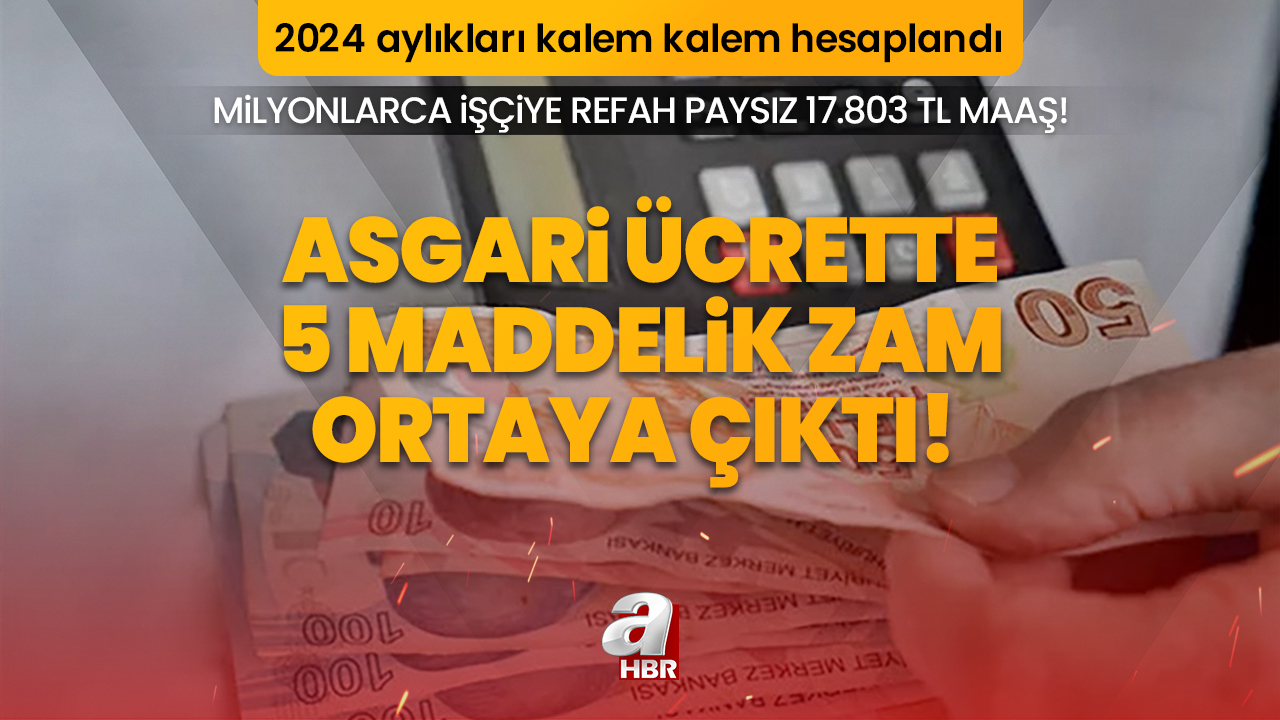 Asgari ücrete 5 maddelik zam ortaya çıktı! Milyonlarca işçiye refah paysız 17.803 TL maaş! 2024 aylıkları kalem kalem hesaplandı