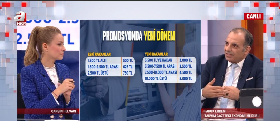 Takvim Gazetesi Ekonomi Müdürü Faruk Erdem, A Haber canlı yayınında konu ile ilgili tüm merak edilenleri anlattı. Promosyonunu artırmak isteyenlere kritik uyarılarda bulundu.