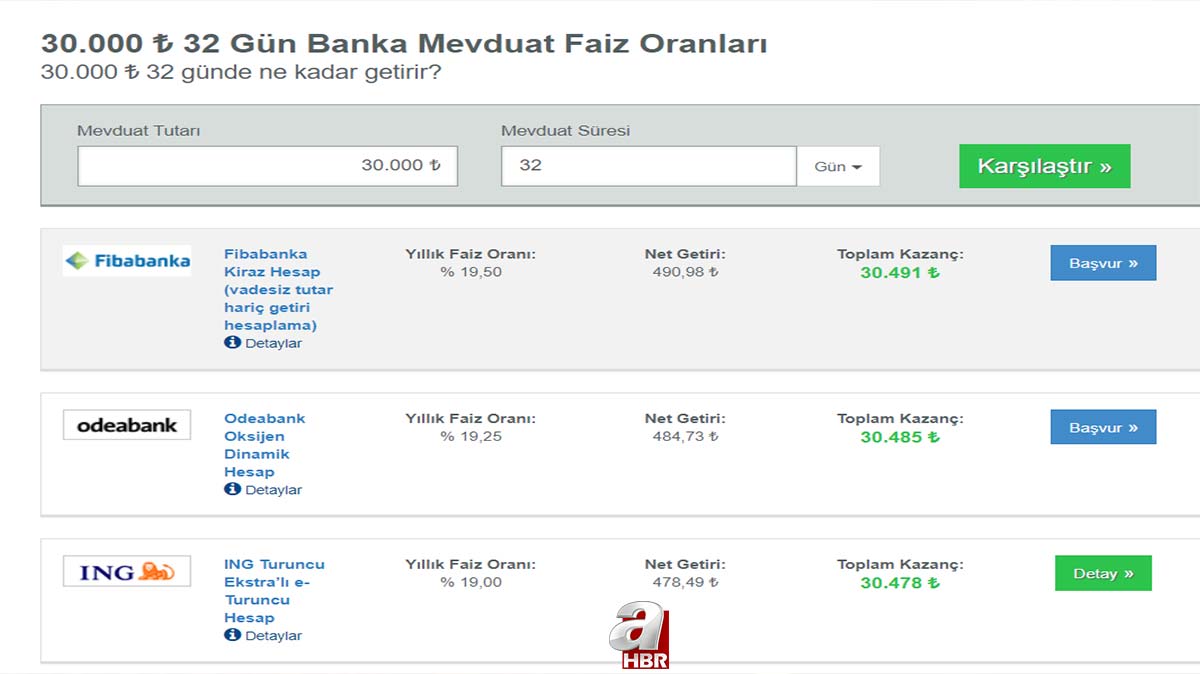 Bankalar yerinde durmuyor, faizler alev aldı! 30.000 TL 32 ve 92 günlük vadeli mevduat faizi mi, repo getirisi mi daha fazla kazanç sağlar?