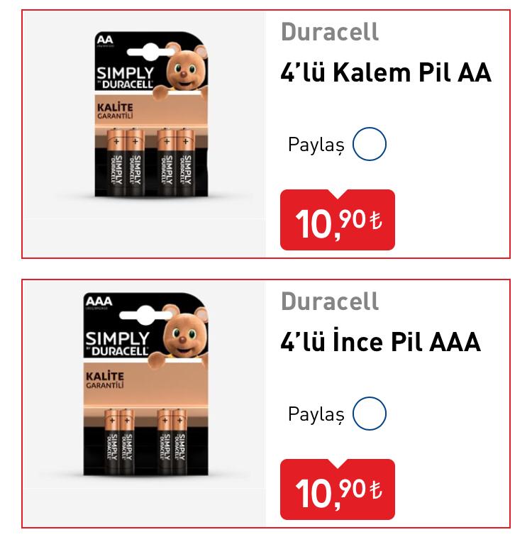 Duracell İnce Pil AAA 4'lü 10,90 TL