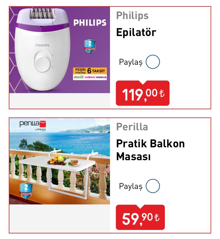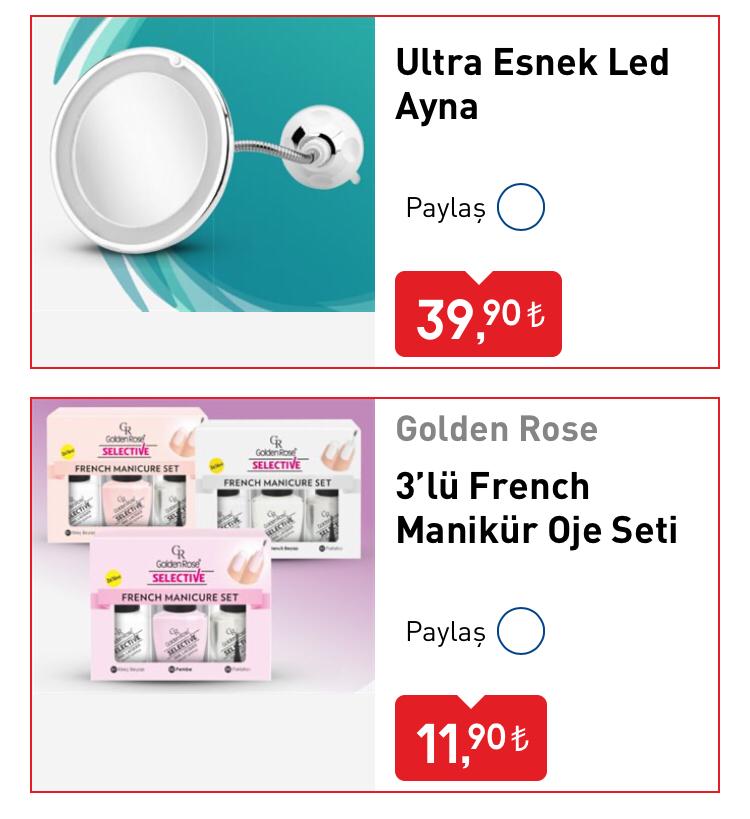 Salı günü satışta olacak ürünlerin yer aldığı kataloğun ilk sayfasında kişisel bakım ürünleri ağırlıkta yer alıyor.