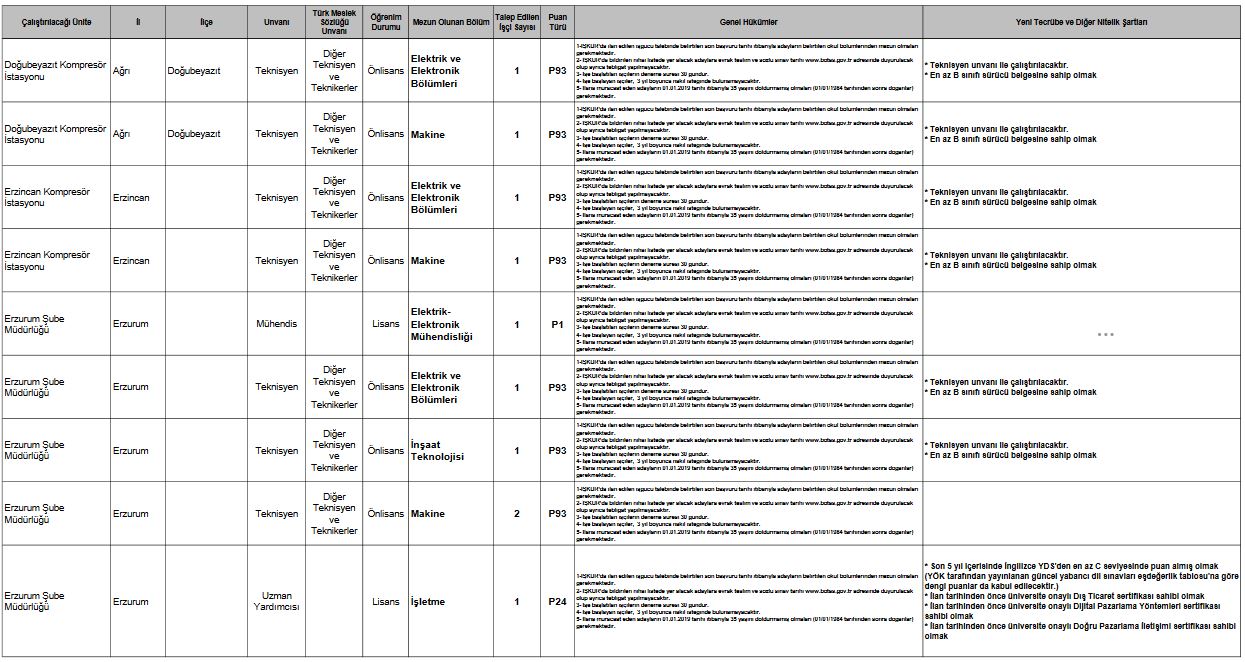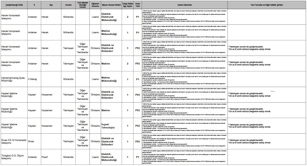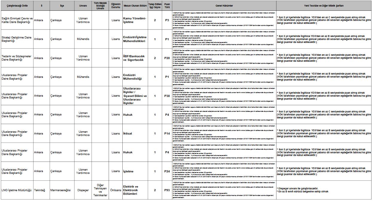 BOTAŞ aralarında mühendis, büro çalışanı, sağlık memuru, teknisyenlerin de bulunduğu birçok meslek grubunda 186 işçi alımı yapacak. Her iş başvurusunda olduğu gibi BOTAŞ personel alımında da belli şartlar var. BOTAŞ işçi alımı başvuru şartları şöyle;