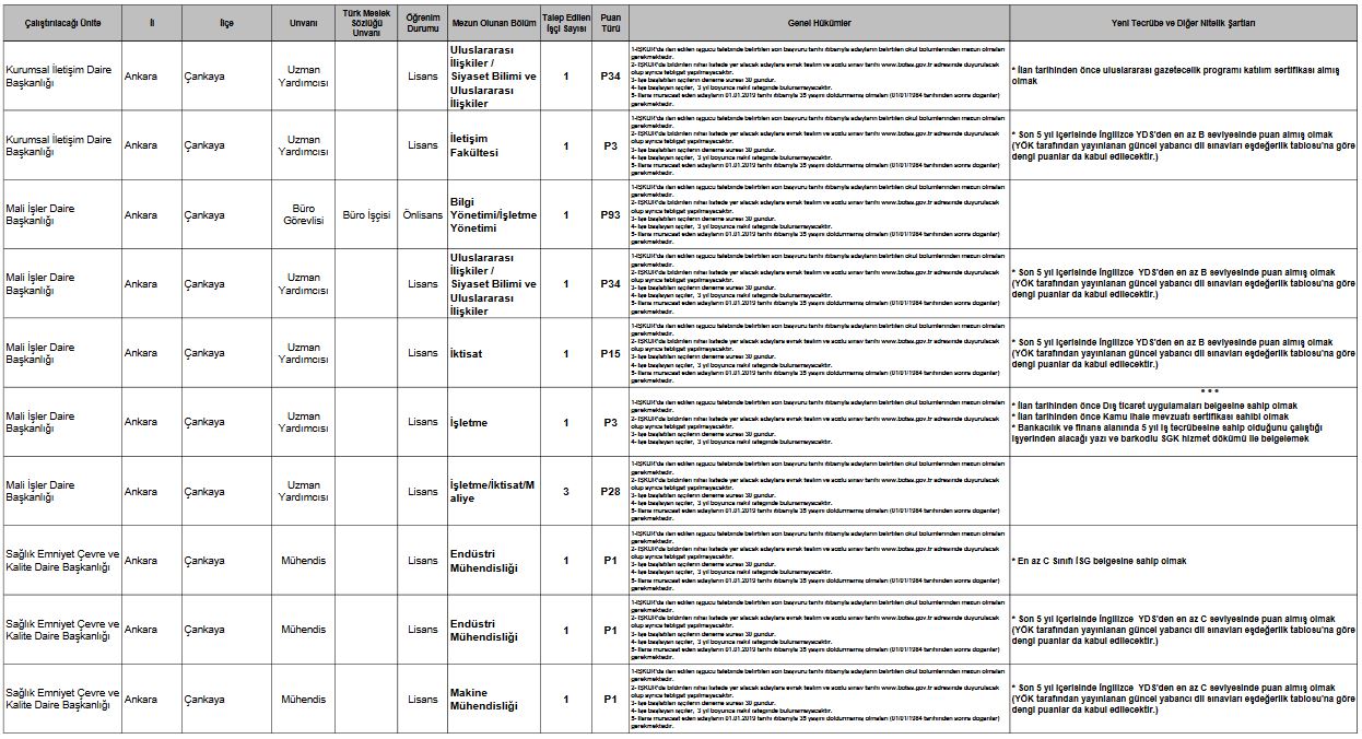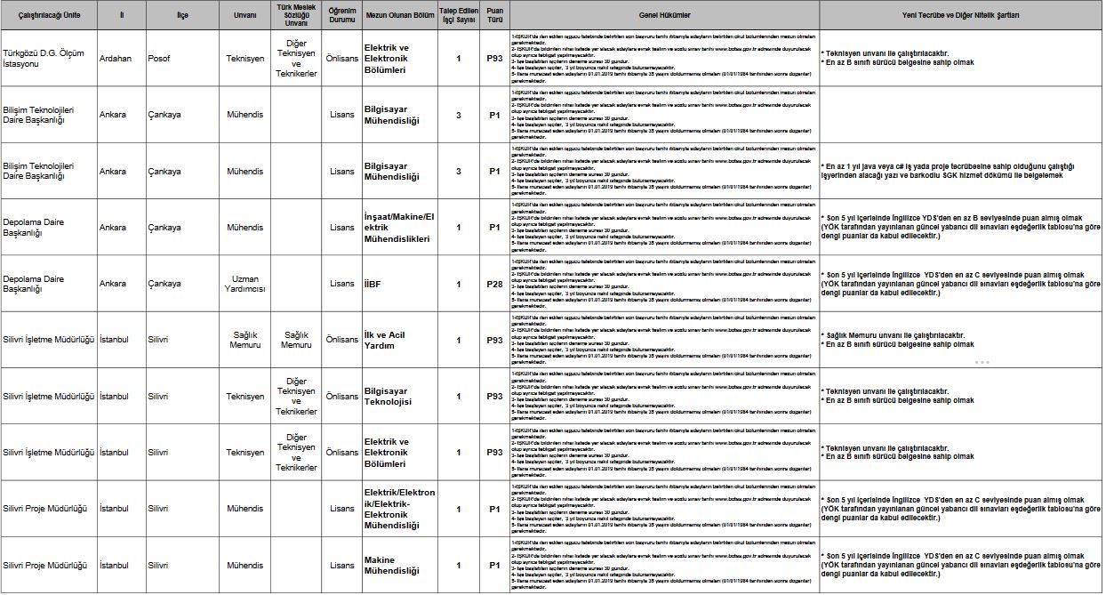 İŞKUR üzerinden 31 Aralık 2018 tarihinde alınmaya başlayan başvurular 4 Ocak 2019 tarihinde yani bugün sona erecek. Adaylar başvurularını https://esube.iskur.gov.tr/Istihdam/AcikIsIlanAra.aspx internet adresi üzerinden yapabilecek.