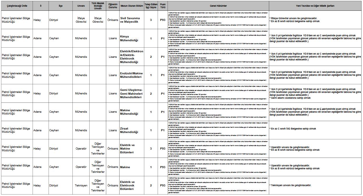 Boru Hatları ile Petrol Taşıma AŞ (BOTAŞ) tarafından İŞKUR üzerinden yayınlanan ilanda dispeçer, mühendis, teknisyen, uzman yardımcısı, sağlık memuru, büro görevlisi, avukat, operatör ve itfaiye görevlisi kadrolarına toplam 186 personel alımı yapılacak. Başvurular bugün sona erecek. Peki, BOTAŞ personel alımı başvuru nasıl yapılır?