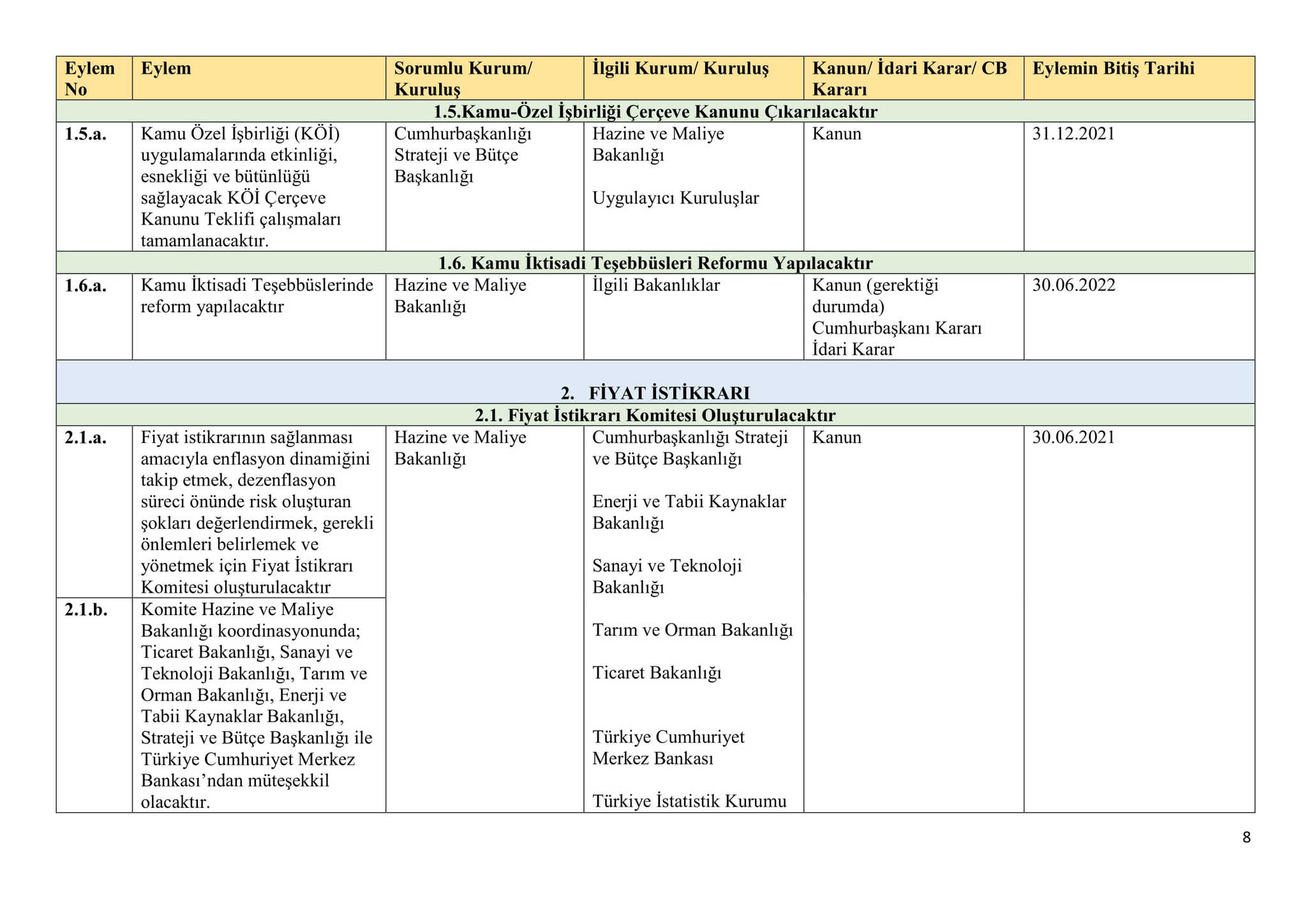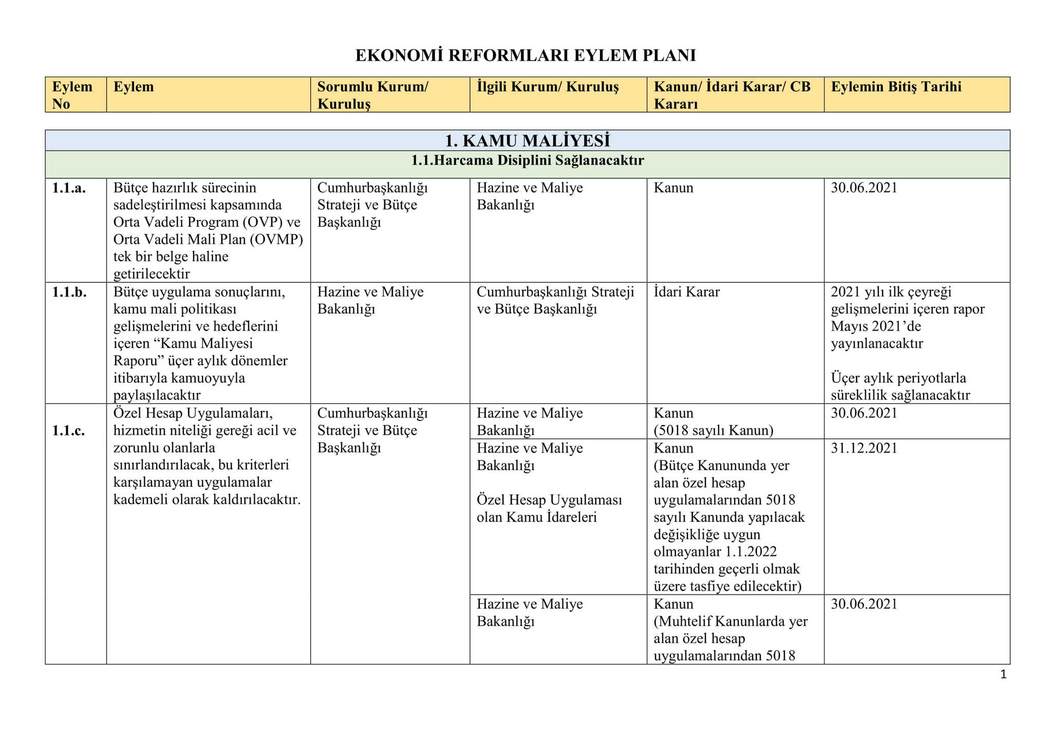 Başkan Recep Tayyip Erdoğan'ın açıkladığı Ekonomi Reform Paketi'nin takvimi açıklandı. 10 ana başlıktan oluşan Ekonomi Reformları Eylem Planı, Hazine ve Maliye Bakanlığının internet sitesinden ilan edildi.
