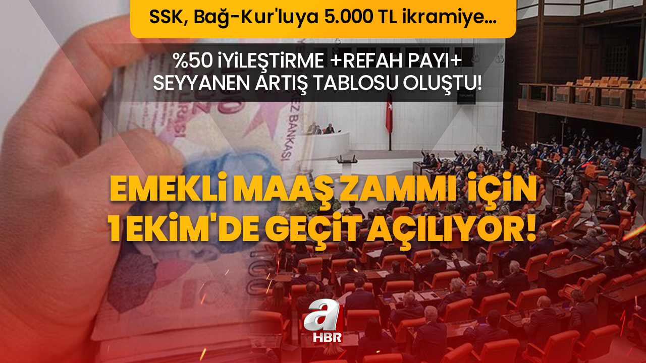 Emekli zammı için 1 Ekim'de geçit açılıyor! SSK, Bağ-Kur'luya 5.000 TL ikramiye… Kök maaşa %50 iyileştirme +refah payı+ seyyanen artış tablosu oluştu!