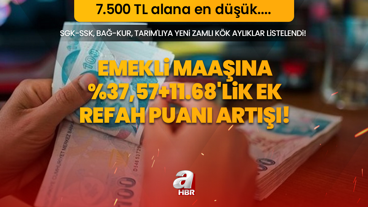 Emekli maaşına %37,57+%5 ek artış! SGK-SSK, BAĞ-KUR, Tarım'lıya yeni zamlı KÖK aylıklar listelendi! 7.500 TL alana en düşük %42,06'lık....
