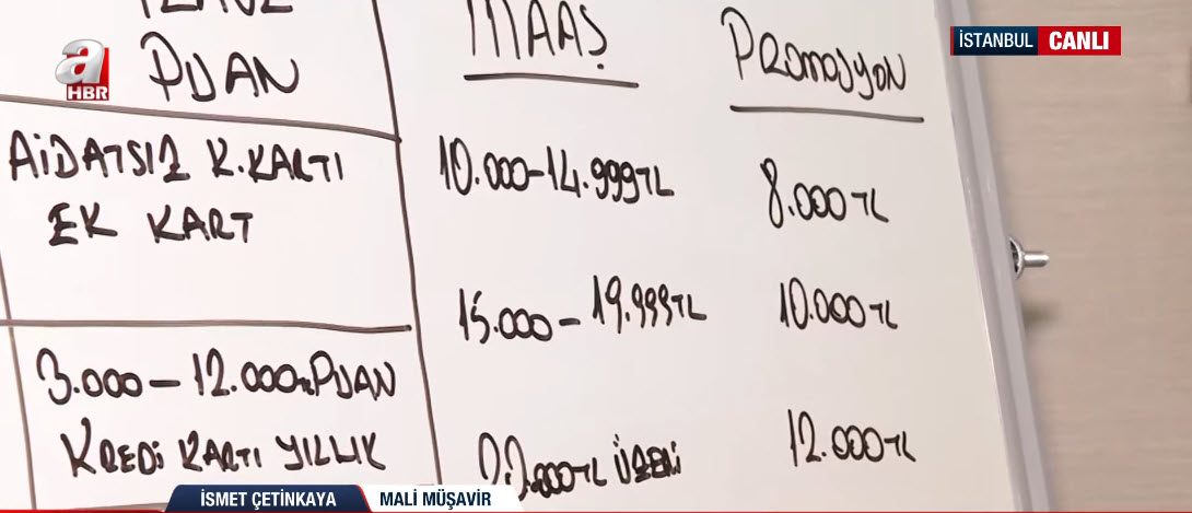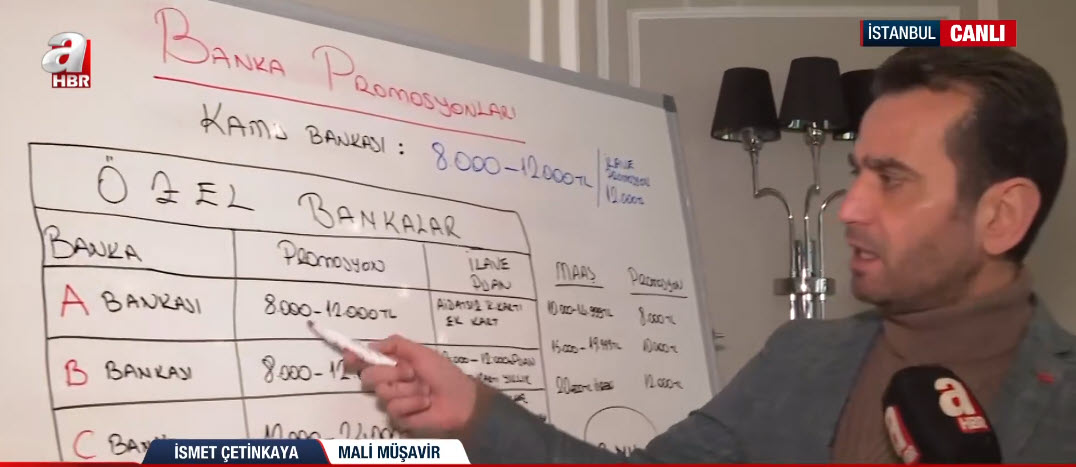 Yeni yılla birlikte SSK, Bağ-Kur, memur ve emekli maaşları da belli oldu. Bununla birlikte bankalar da promosyon ücretlerini yeniledi. Ne kadara kadar çıkacak bu ücretler? Ek ödemelerle birlikte ne kadar olacak? Sözleşmeler yapılırken nelere dikkat edilmeli? Mali Müşavir İsmet Çetinkaya, A Haber canlı yayınında anlattı.