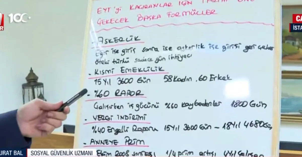 Milyonlarca çalışan erken emeklilik ile ilgili formülleri araştırıyor. Peki EYT'yi kaçıranlar için erken emeklilik formülü neler? Emeklilikte tarih öne çekilebilir mi? Ayrıntıları A Haber muhabiri Mehmet Karataş aktardı. Sosyal Güvenlik Uzmanı Murat Bal konu ile ilgili detayları anlattı.