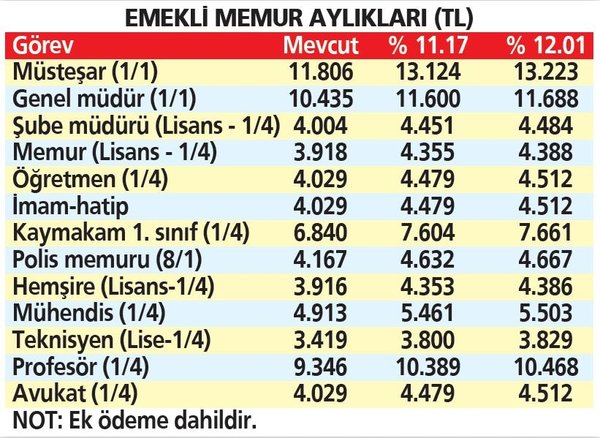 Milyonlarca memur ve memur emeklisi Ocak'ta çifte zam alacak. Ağustos'ta yapılan toplu sözleşme ile Ocak zammı yüzde 5 olarak belirlenen memurlar ve memur emeklilerine, ayrıca enflasyon farkı göründü.