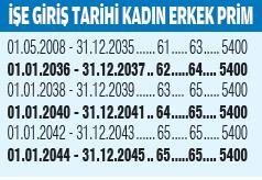 EYT'li olamayan sigortalılar için kademeli bir yaş şartı bulunuyor. Bu yaş şartlarını da işe giriş tarihleri belirliyor.