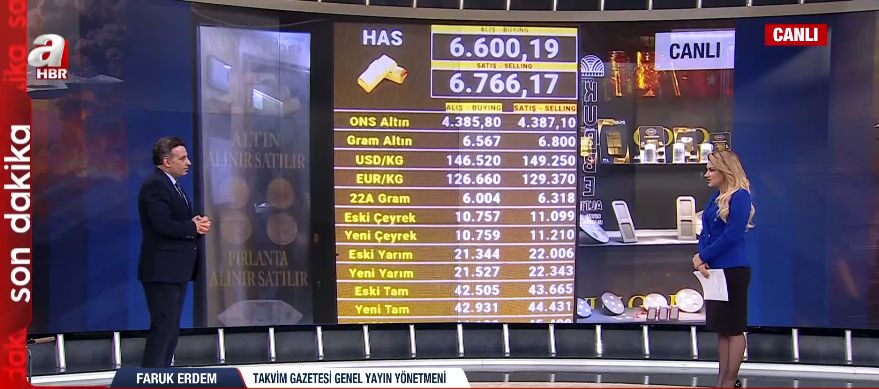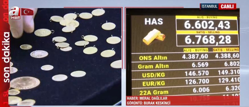 Haftanın başından itibaren piyasalardaki hareketliliği yerinden takip eden A Haber Muhabiri Meral Dağlılar, "Has altında 6 bin 600 liradan alış, 6 bin 768 lira civarında da bir satış seyrimiz var. Tablonun geneline baktığımızda yine bir düşüş söz konusu. Gram altında 6 bin 798, eski çeyrek satışında ise 11 bin lira civarında bir rakam görüyoruz." sözleriyle piyasadaki güncel durumu aktardı.