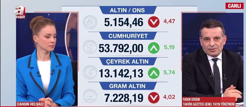 Altın piyasasında rekorların ardından yaşanan sert düşüşün perde arkası A Haber'de masaya yatırıldı. Ekonomist Doç. Dr. Yüksel Okşak, Takvim Gazetesi Genel Yayın Yönetmeni Faruk Erdem ve Ekonomist Arzu Odabaşı, altındaki dalgalanmanın nedenlerini, "balinaların" kar satışlarını ve Kapalıçarşı'daki son durumu değerlendirdi. Uzmanlar, düşüşün ana trendi bozmadığını vurgularken, yatırımcıya temkinli hareket edilmesi ve panikten uzak durulması yönünde kritik yol haritası çizdi.
