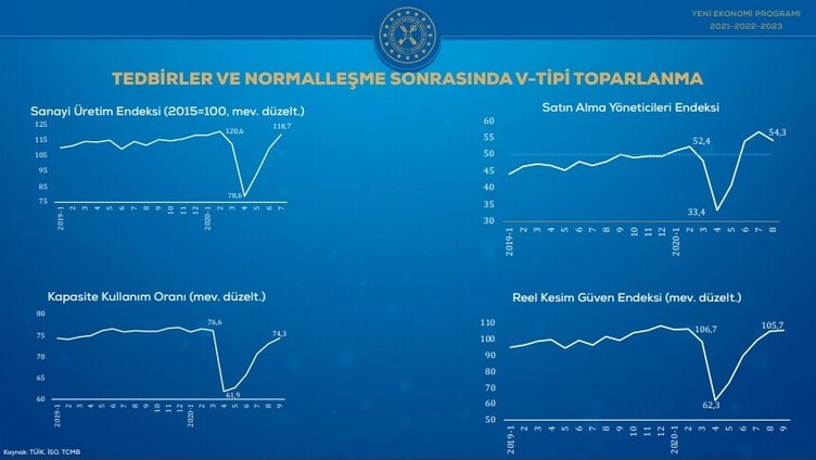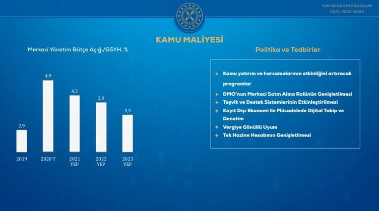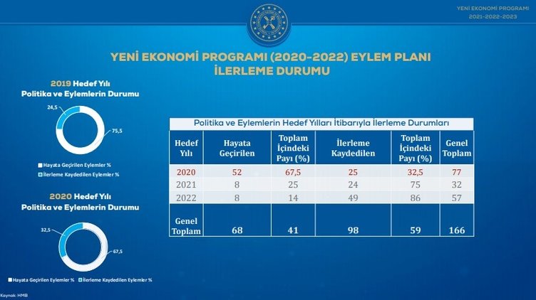 Hazine ve Maliye Bakanı Berat Albayrak Yeni Ekonomi Programı 2021-2023 Lansman Toplantısı'nda gelecek üç yılın ekonomi haritasını açıkladı. Gelecek üç yıla ilişkin enflasyon, istihdam, büyüme, ihracat, cari açık gibi temel makro göstergeler duyuruldu. İşte ekonomide gelecek üç yılın yol haritası niteliği taşıyan Yeni Ekonomi Programı...