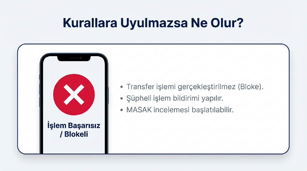 Vatandaşları kendi IBAN numaralarını başka kişi veya kurumlara kullandırmamaları konusunda uyaran uzmanlar, bu durumun ciddi sonuçları olabileceğini belirtiyor. Özen gösterilmemesi halinde terörün finansmanından kara paranın aklanmasına ve vergi kaçakçılığına kadar ağır suçlamalarla karşı karşıya kalınabilir.