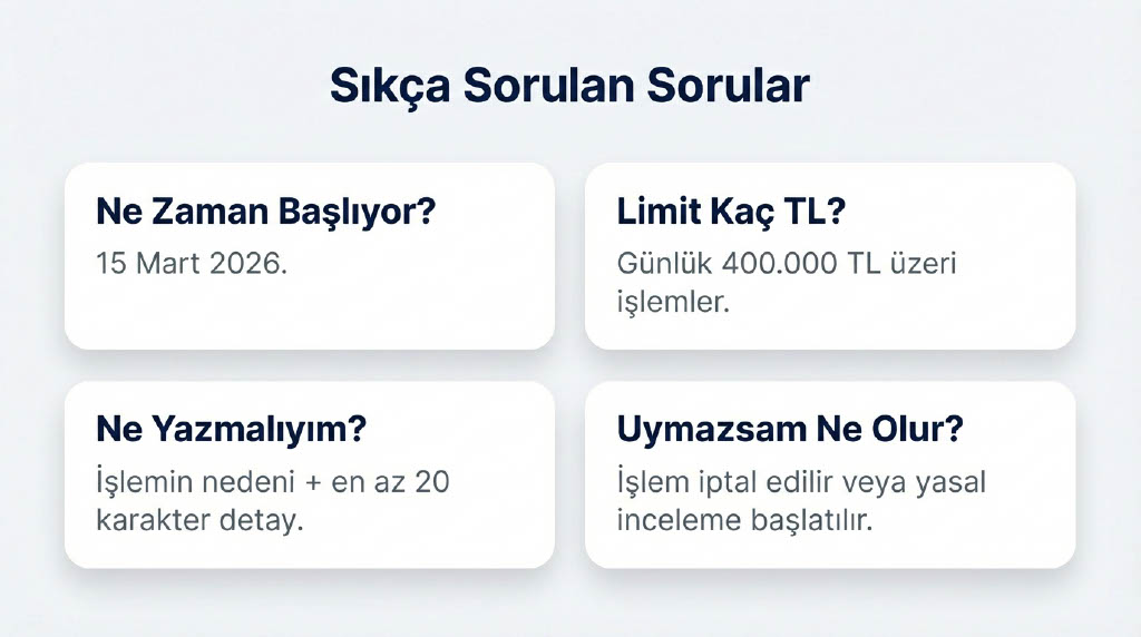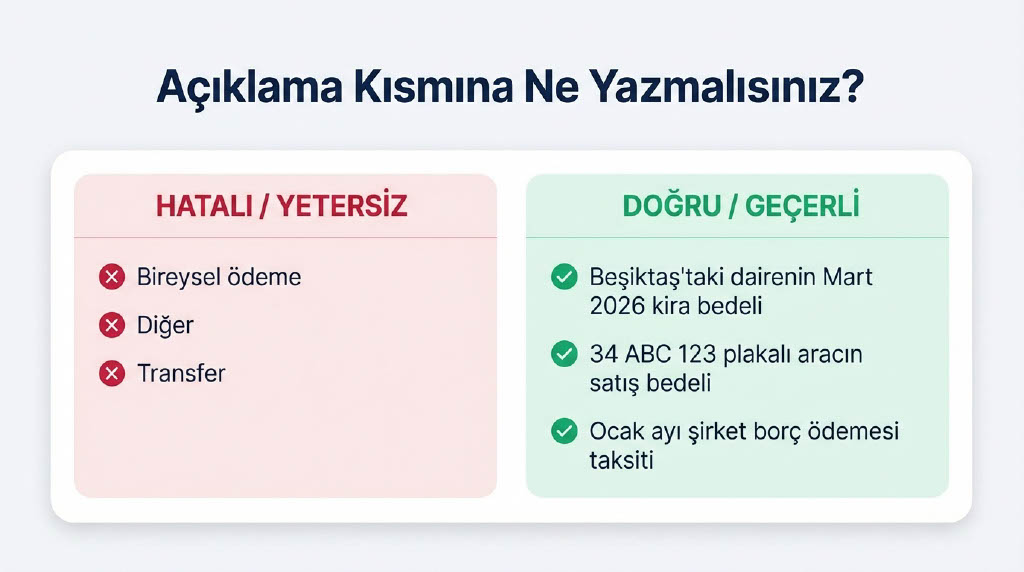 Bankalar, transfer ekranlarında müşterilere gayrimenkul, araç alımı, borç ödeme gibi özel kategoriler sunacak. "Diğer" veya "Bireysel ödeme" gibi genel seçeneklerin tercih edilmesi halinde, bankalar müşteriden paranın kaynağına ve amacına dair ek açıklama talep edebilecek.