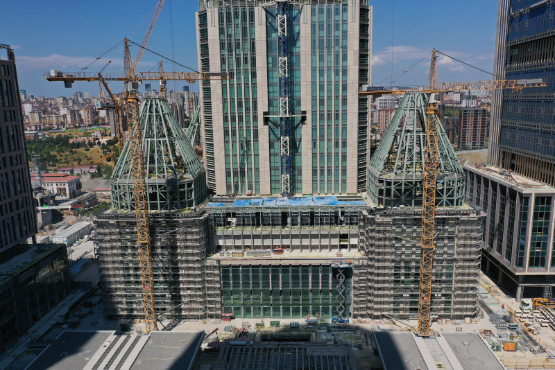 Nitelikli ve çok boyutlu bir finansal hizmetler ekosistemi yaratmayı hedefleyen ve yılın son çeyreğinde faaliyete başlaması beklenen İFM'de gelinen son noktayı havada ve karadan görüntülendi.