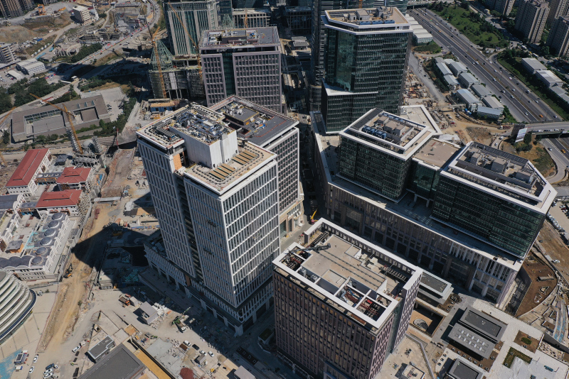 İstanbul'u dünyanın önemli finans merkezleri ile rekabet edebilir konuma yükseltmeyi amaçlayan ve yılın son çeyreğinde faaliyete geçmesi beklenen İstanbul Finans Merkezi'nde çalışmalar tüm hızıyla yürütülüyor. Son hali havadan ve yerden görüntülenen merkezde, 1,4 milyon metrekare ofis alanı, 100 bin metrekarelik AVM, 2 bin 100 kişilik konferans ve gösteri merkezi, 30 bin metrekarelik 5 yıldızlı otel ve 26 bin araç kapasiteli otopark bulunuyor.